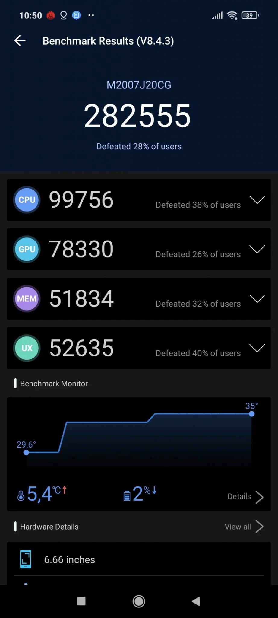 For some reason, the manufacturer treated the size of the memory as a big secret, so I was a little worried that there would only be a 4 GB version, but luckily they stayed with the minimum 6 Gigabytes of RAM and 64 or 128 GB of storage, which is what people 95% of them have enough. I ran the benchmarks, let's see what the third "Pocok" can do. 282 points in Antutu achieved in the GFX Bench T-Rex test 91 FPSt, and the write-read speed in Androbench is 495/256 MB. The latter is perhaps a bit of a disappointment, as it only supports the UFS 2.1 standard, but the speed of the system is not felt at all, everything starts and installs lightning fast.