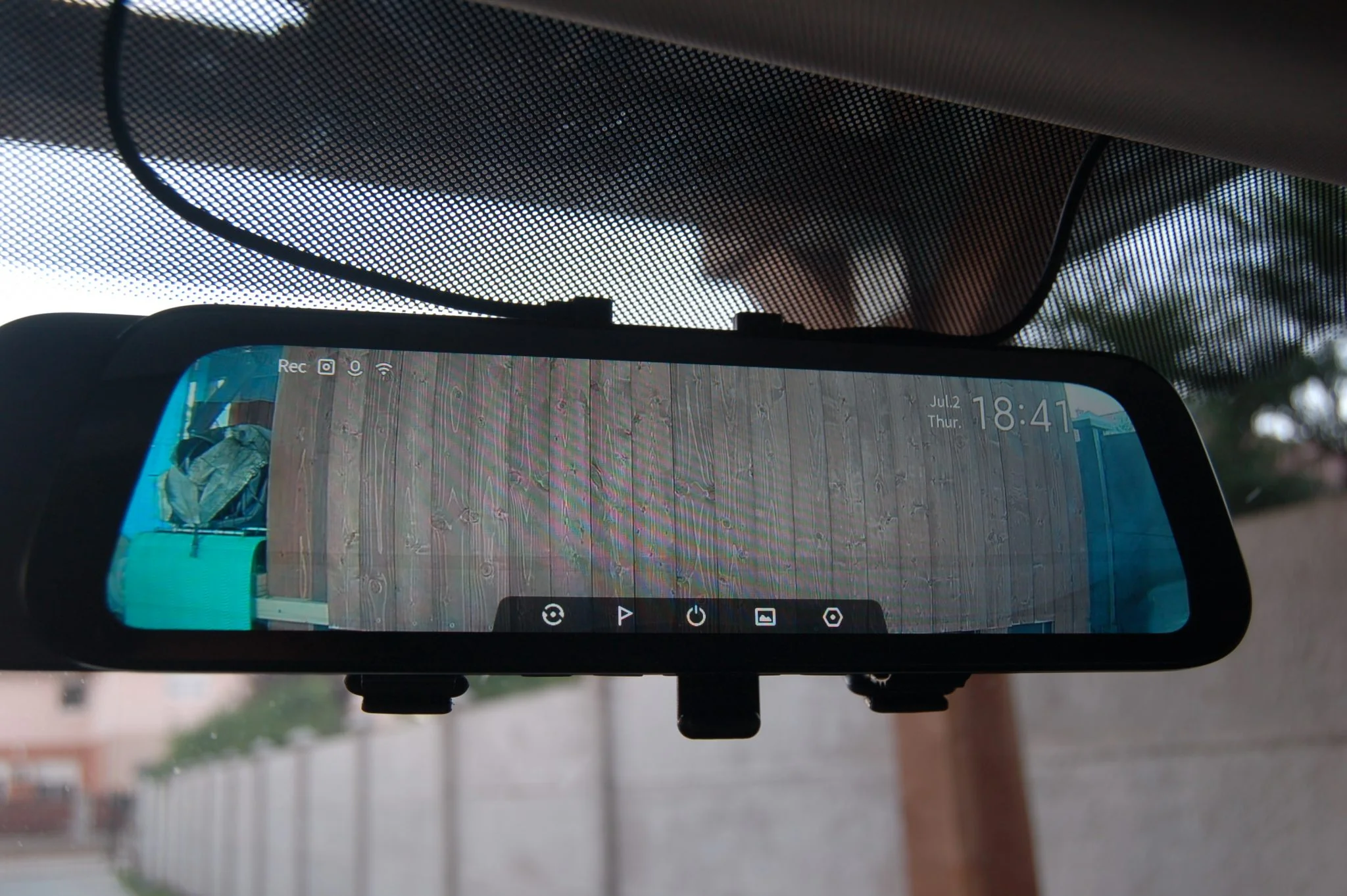 La primera característica sorprendente de la cámara del espejo es la función del espejo en sí: es mucho más oscuro que el espejo de fábrica del automóvil, pero no tanto como en el modo oscuro de fábrica. Con el tiempo, por la noche, en invierno, quedará claro lo inquietante que es y si hay algo negativo en ello. La segunda característica sorprendente es el volumen de la cámara, lo cual es una desventaja para mí. Tiene altavoz y feedback por voz -es decir, dice lo que está haciendo, en inglés o ruso-, viene encendido de fábrica y explica a máximo volumen.