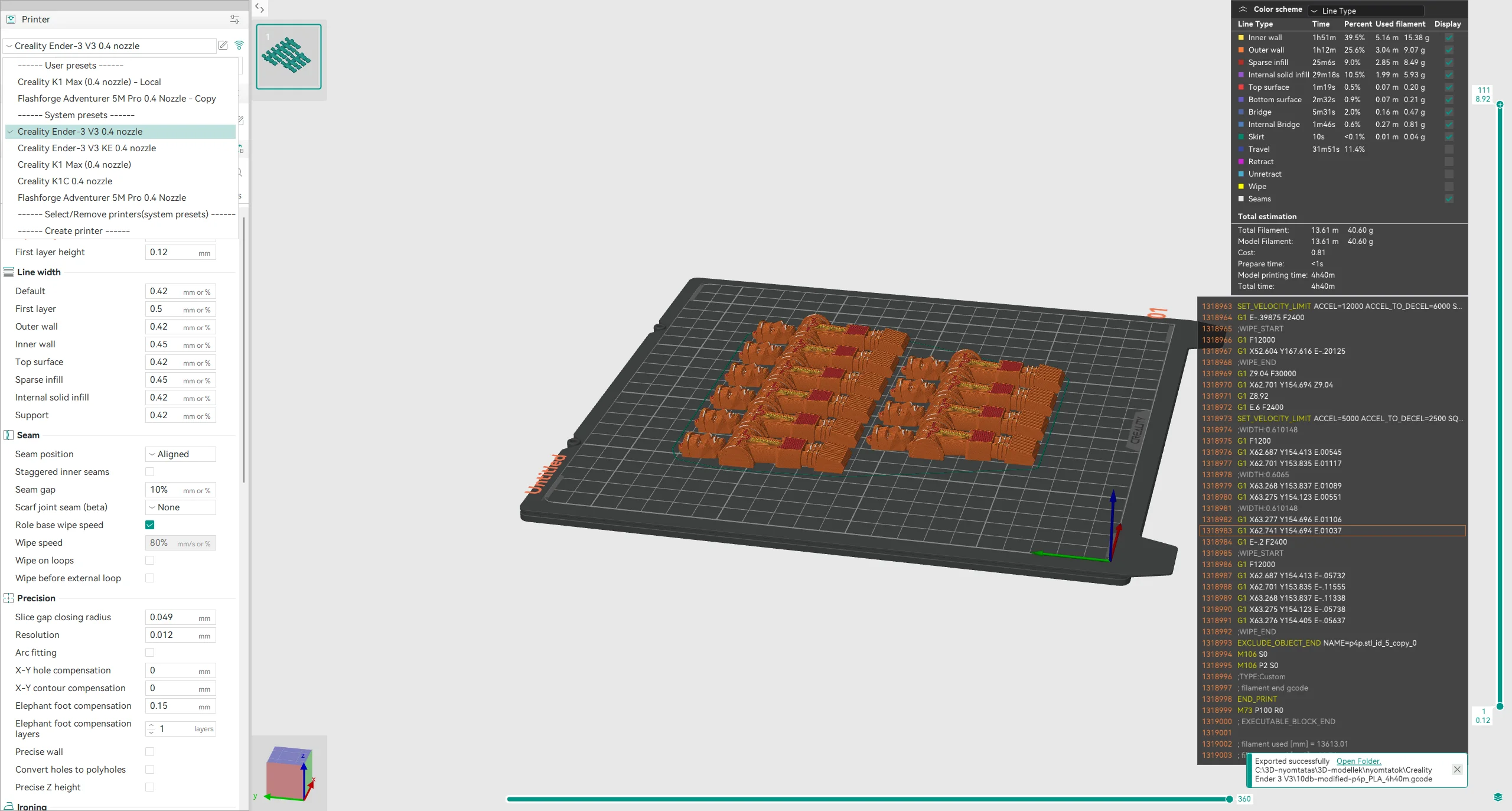 Fue para Creality Ender 3 V3-KE Rebanador de mejillas perfil. Basado en los fallos anteriores de Creality Print, sobre los que escribí en otras pruebas de impresoras 3D, Ni siquiera intenté forzar su propia agenda., Inmediatamente cambié a Orca. Esto tiene un gran inconveniente: no puede enviar el código G del archivo 3D directamente a la computadora, sólo guardarlo.