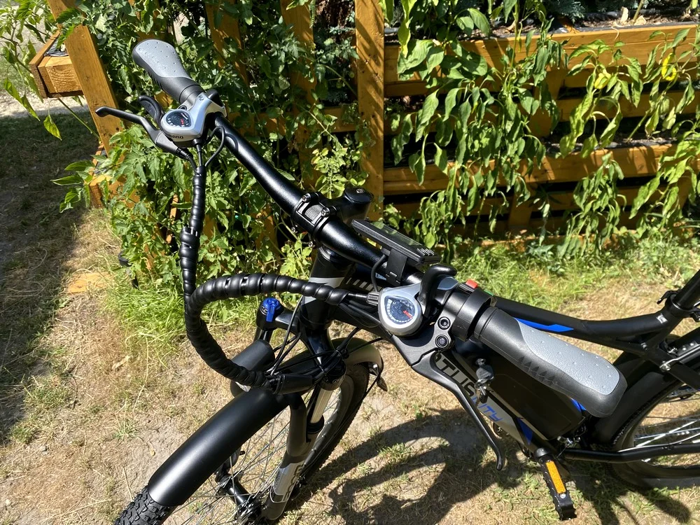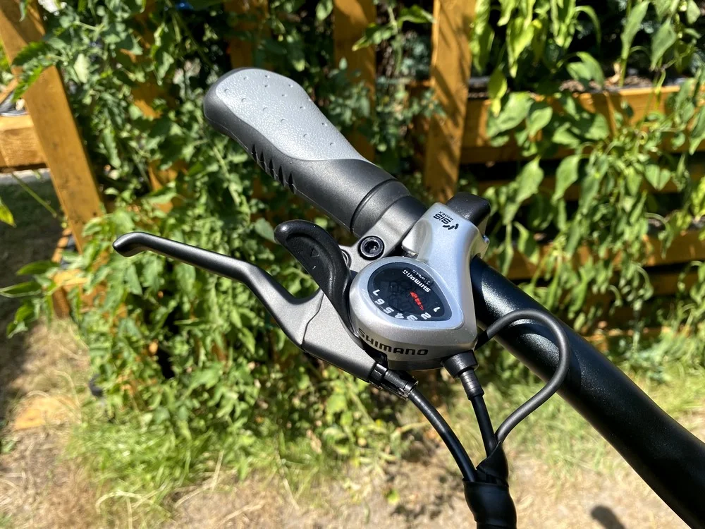 La altura del manillar no se puede ajustar, aunque esto es más típico en las bicicletas de camping. La pequeña computadora que tiene es una pieza bastante bonita. Muestra todos los detalles importantes, como el nivel de carga de la batería, el nivel de asistencia seleccionado, la velocidad actual, la distancia total recorrida y otros, pero