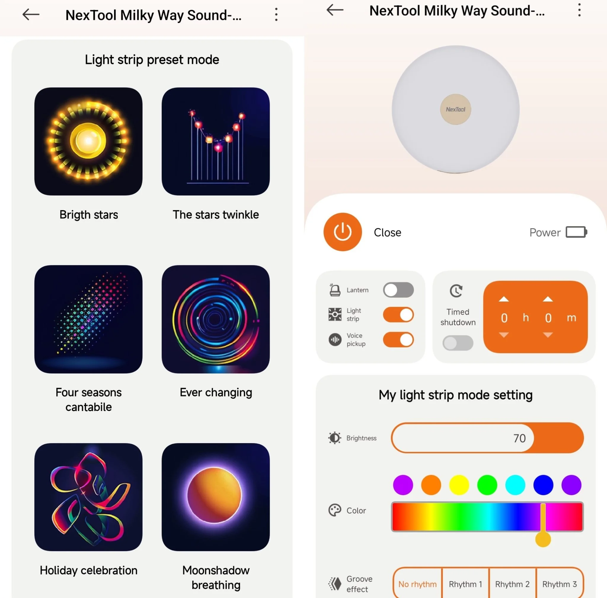 La única forma en que pude conectar el Nextool GC12S a mi teléfono fue a través de Bluetooth A través de eso Configuré la aplicación Xiaomi Home en la región china. Y desafortunadamente, esta no es la única característica negativa del dispositivo. La conexión se perdió varias veces o no podían comunicarse por teléfono, lo cual era muy molesto. El GC12S también se puede controlar presionando el botón de encendido en la parte inferior si no tienes paciencia para la aplicación: de esta manera puedes controlar cosas básicas. Además de encenderlo y apagarlo, 7 modos de luz Se puede cambiar entre, pero La aplicación ofrece muchas más funciones. Podremos ajustar el brillo, los colores, elegir uno de los modos preestablecidos y programar cuando debe apagarse la luz. Si encendemos el captación de vozy el en efecto groove También seleccionamos uno de los ritmos, luego La luz parpadeará al ritmo de la música dada., lo cual es especialmente divertido. No se puede utilizar como reproductor de música, así que puse mi teléfono a su lado, comencé a escuchar una canción en YouTube y el Nextool GC12S comenzó a parpadear. La única pega de la aplicación es que, aunque muestra el nivel de batería en la parte superior derecha, no muestra exactamente cuánta energía le queda a nuestro pequeño rayo de alegría. No estaría de más saber esto para poder conectarlo a un cargador en caso de ser necesario antes de que nos invada totalmente la oscuridad.