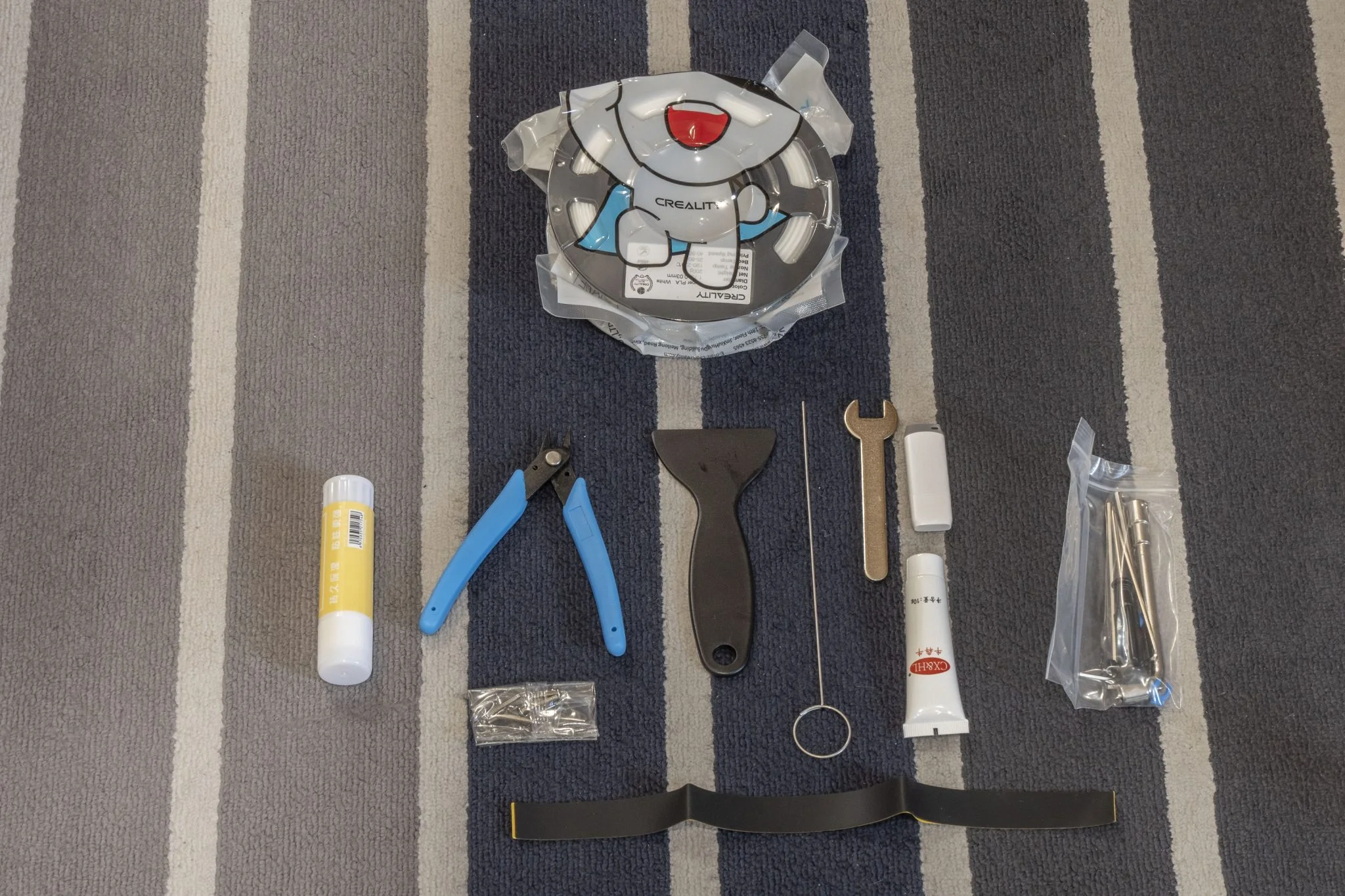 Lo curioso es que dan unos modelos de prueba con la impresora 1D Creality K3C, que el en caja con PLA ¡Puedes imprimir uno de estos en una página! soporte de filamento acoplable. Si la empresa también sabía que la parte trasera no era buena, ¿por qué no lo hicieron en el lateral por defecto? Es completamente incomprensible. ¿Qué más se incluye en el paquete básico? Herramientas, material adhesivo, espátula para recoger y algunos detalles más además de la descripción. Vale la pena repasar esto último, porque aunque ponerlo en funcionamiento no es una gran aventura (prácticamente se obtiene una impresora 3D ya montada), hay que quitar los tornillos de fijación y algunas cosas más.