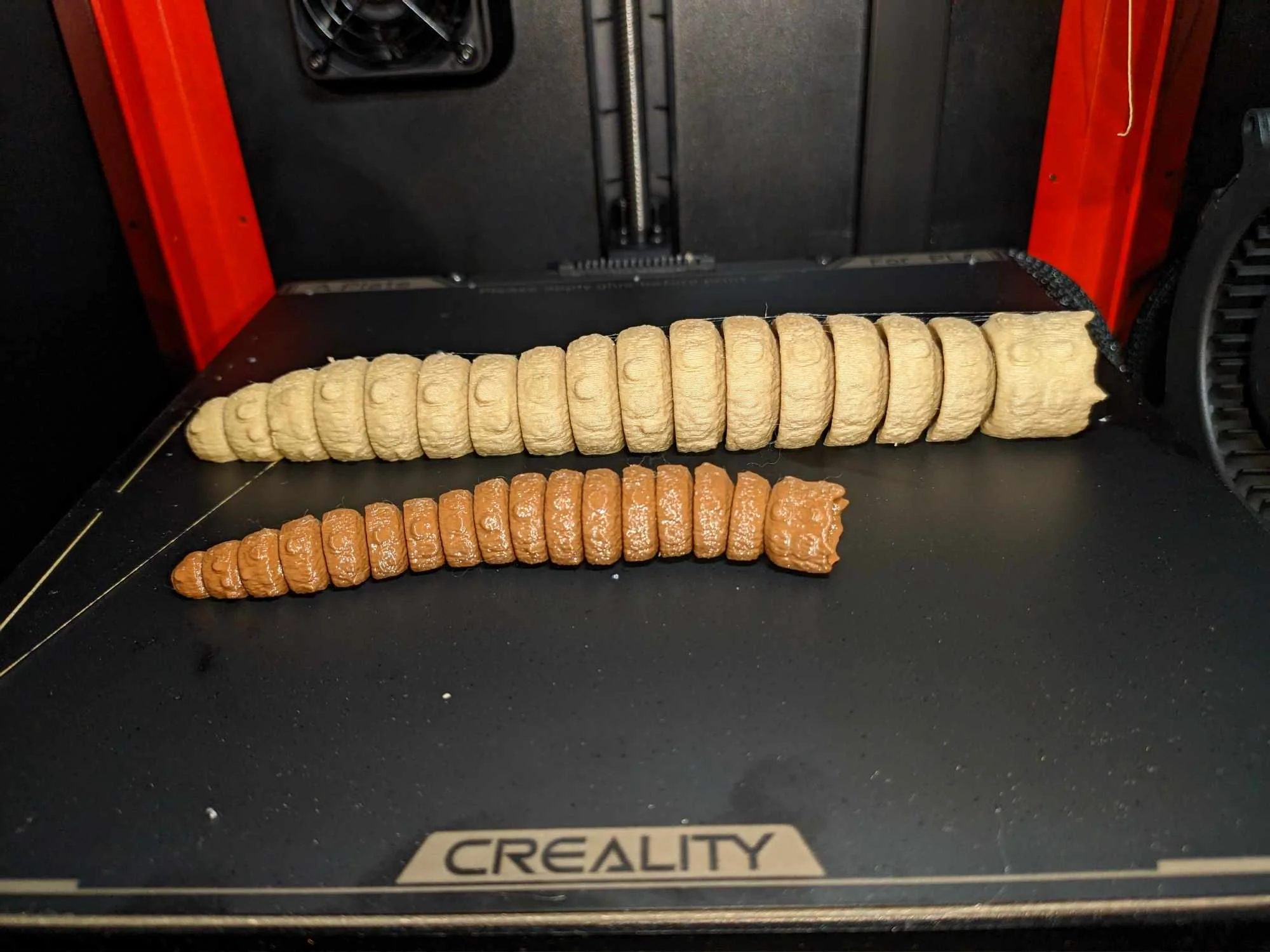 hay muy pocos defectos en las fibras, el número de artefactos - "elementos extraños" resultantes de errores de impresión - es insignificante y, dado que la impresora 3D enfría el objeto, La solidificación también crea una superficie más uniforme y, en general, más hermosa. que soluciones más baratas. La impresora maneja los siguientes materiales: PLA, ABS, PETG, TPU, PA, PC, carbono y algunos otros, trabajamos principalmente con PLA. La boquilla es del tipo llamado "unicornio", lo que significa que en el cuerpo de acero y cobre se ha colocado una aleación de titanio, que es especialmente resistente al calor, por lo que el cabezal de impresión se puede calentar hasta 300 grados centígrados. La Creality K1C 3D tampoco escatima en calor, incluso imprimió PLA a 220, aunque estamos acostumbrados a alrededor de 190 con nuestra otra impresora Creality. Sin embargo, el diseño de la extrusora es único, Así como el firmware también está cerrado (sí, se puede rootear), tampoco es exactamente compatible con la modificación.
