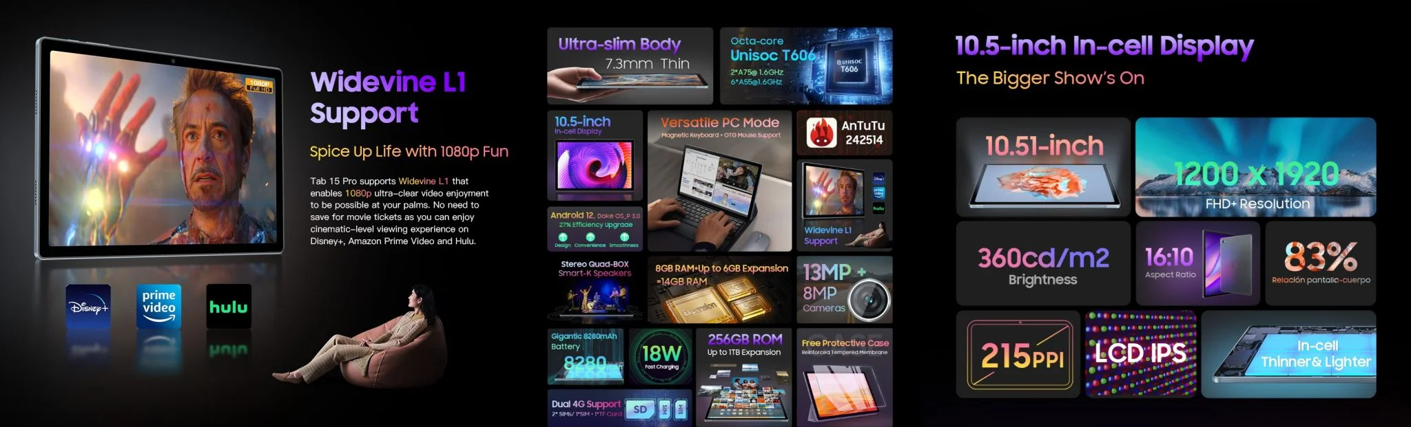 Además, la Tab 15 Pro no es desagradable de sostener, el montaje y el uso de materiales son buenos.
