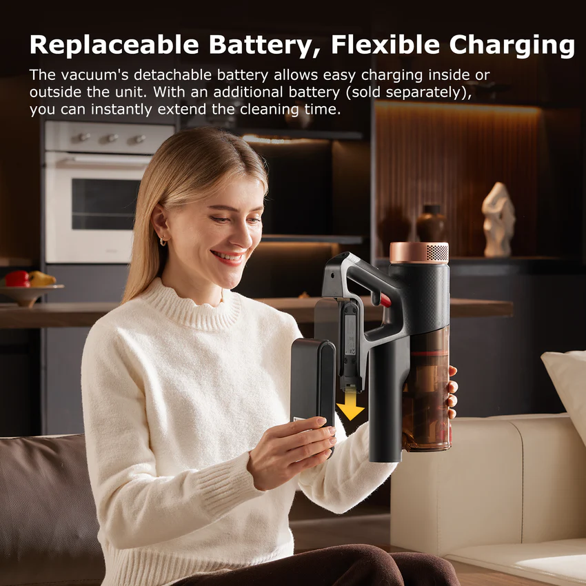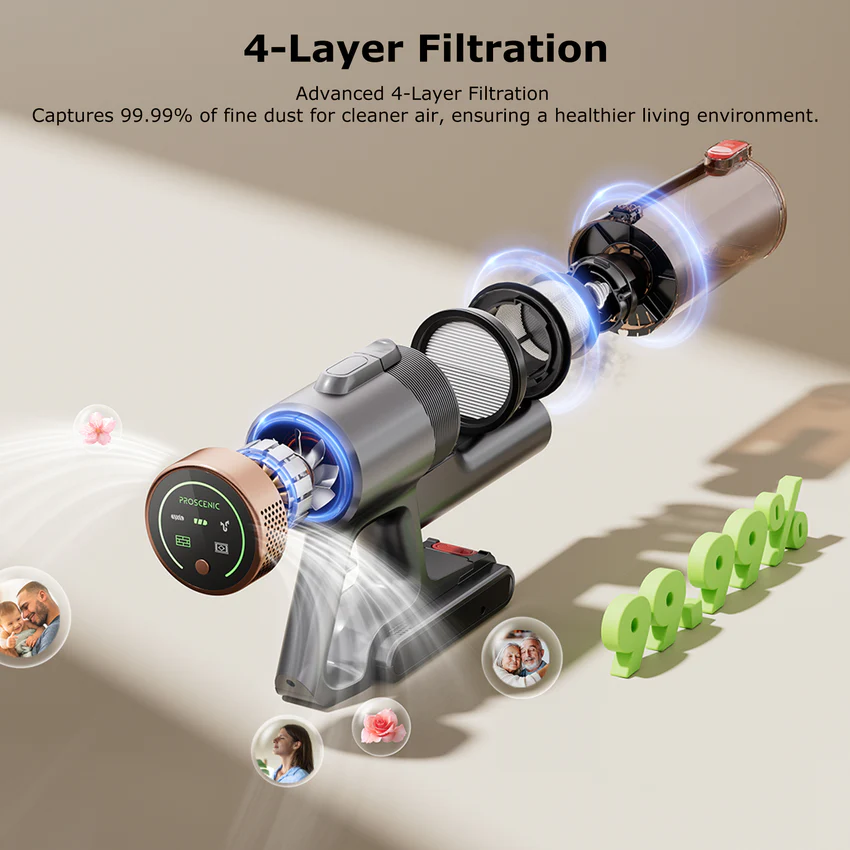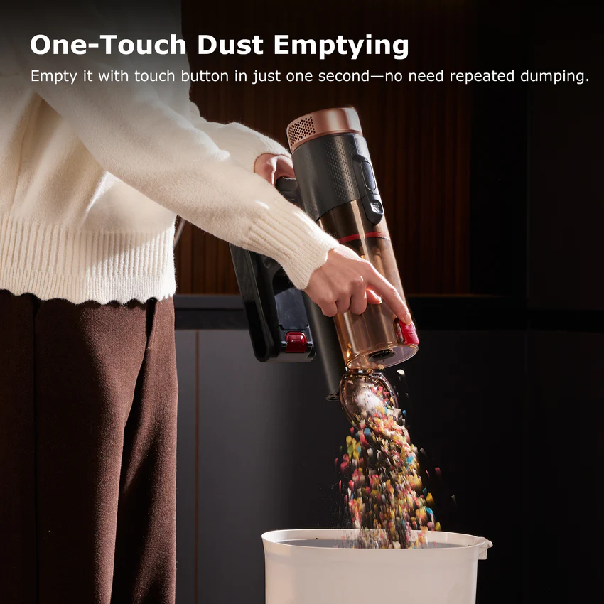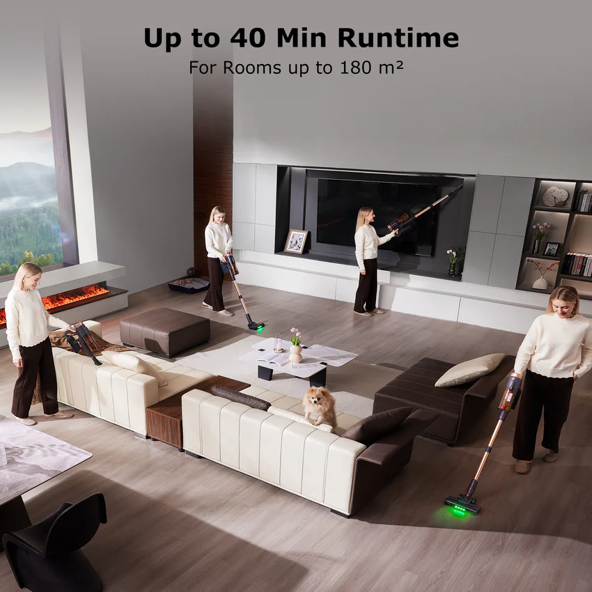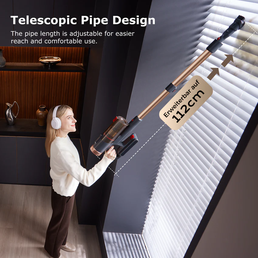 Non, ce n’est pas un test de pression barométrique ni un nouveau groupe motopropulseur Tesla. Il s'agit du Proscenic P11 Ultra, qui avec sa puissance d'aspiration de 40 000 Pa pourrait facilement aspirer la poussière de Mars s'il disposait d'une rallonge. Si vous en avez assez des poils qui s'enroulent autour de votre brosse comme des serpents autour des arbres, ou si la fourrure emmêlée de votre chat pourrait vous coûter un appartement séparé, alors bienvenue dans une nouvelle dimension de propreté. De plus, cela ressemble à un gadget Star Trek tombé d'un futur en or rose - sauf qu'il fonctionne réellement et ne nécessite pas de pont de commandement.