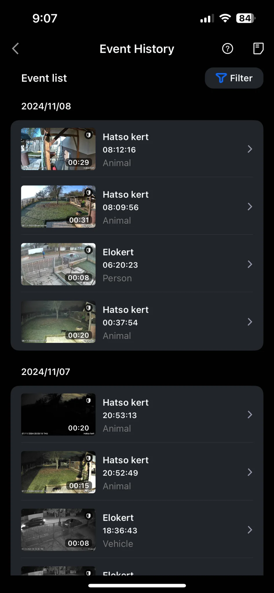 Dans la vidéo ci-dessous, vous pouvez voir des enregistrements réalisés à différents moments de la journée. Lors de l'enregistrement du soir, il faisait déjà complètement noir, seule la lumière provenant de la terrasse et les LED de la caméra éclairaient la cour, à l'œil nu il ne faisait qu'à moitié noir, par rapport à cela, tout se voit parfaitement sur la vidéo. Et en dessous, j'ai inséré une photo, sur le côté gauche de laquelle se trouve une image recadrée de l'enregistrement Altas PT Ultra, et sur le côté droit se trouve une photo prise avec un iPhone 13 en même temps, que j'ai essayé de reproduire comme ainsi que possible quelles étaient les conditions d'éclairage à ce moment-là.