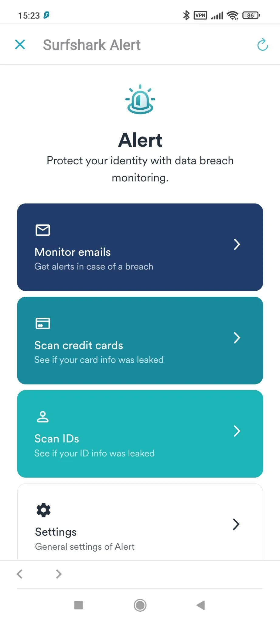- Surfshark Alerte: service d'alerte si votre carte bancaire ou votre adresse email a été compromise