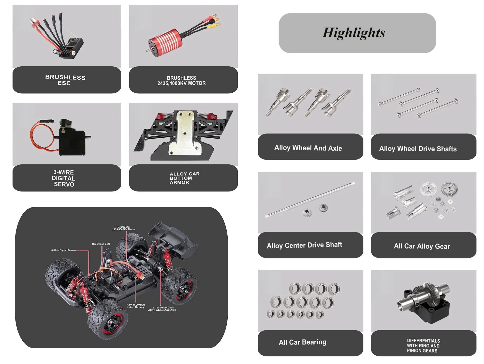 - Moteur sans balais puissant, accélération brutale