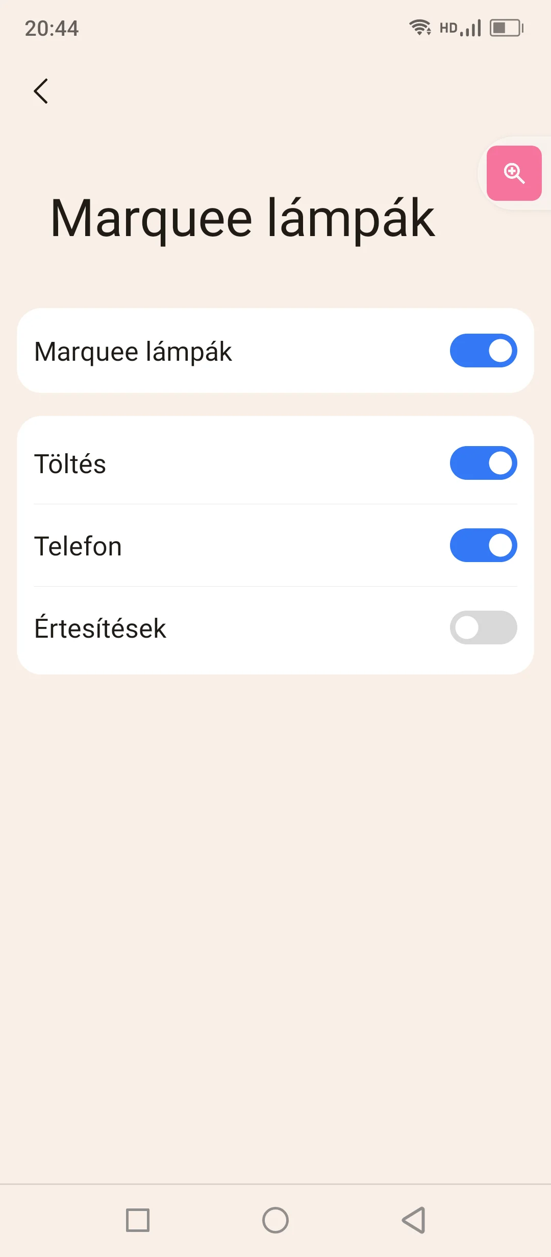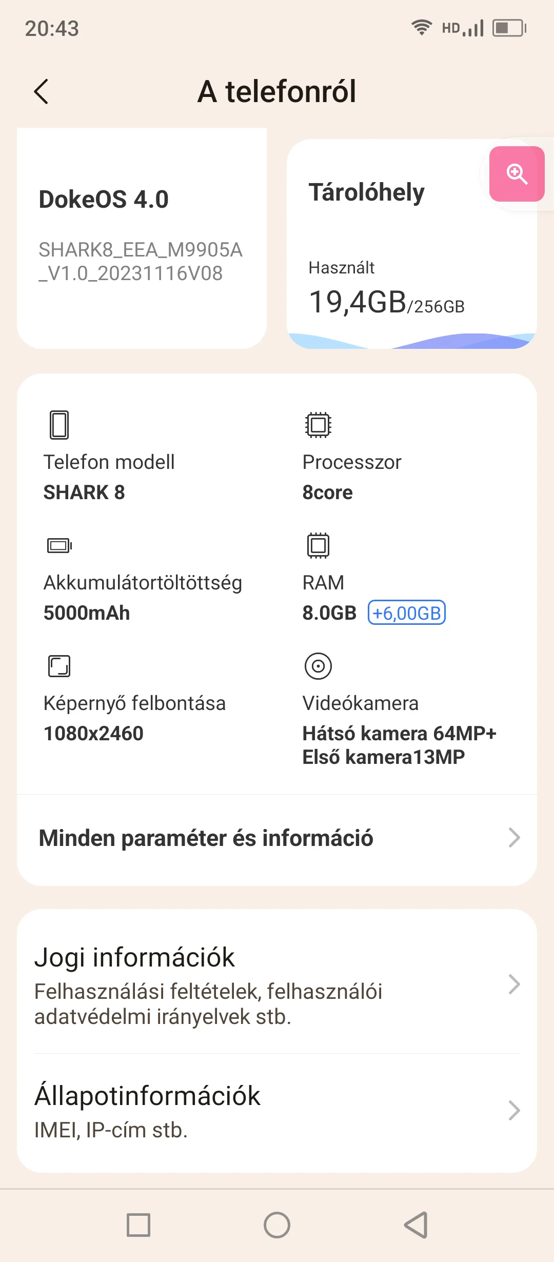 qui vient avec la version 4.0 et fondamentalement Pour Android 13 construire. Le système n'est pas mal, j'ai aimé les menus relativement simples mais jolis, structurés assez logiquement. Mais le plus grand mérite est que pas de publicité et d'applications inutiles préinstallées, ce à quoi, récemment, par exemple, les téléphones de Xiaomi et Poco ne peuvent échapper. De plus, l'interface intègre intelligemment des fonctions supplémentaires : lorsqu'un appel arrive, l'enregistrement vocal apparaît, etc. Et ce qui peut y être personnalisé - mode sombre adaptatif, réduction de texte, nombre d'icônes ligne-colonne, appel d'urgence, etc. -, ils sont presque tous utiles et leur place est aussi logique. C'est peut-être juste que les noms sont étranges à certains endroits, par exemple "Smooth Display" est le nom du paramètre de mise à jour de l'image, que j'ai trouvé un peu plus difficile que d'habitude, mais je n'ai rencontré aucune erreur sérieuse. Cependant, il n'y a aucune nouvelle concernant les mises à jour logicielles, on ne sait donc pas combien de temps l'entreprise prendra en charge son propre appareil.