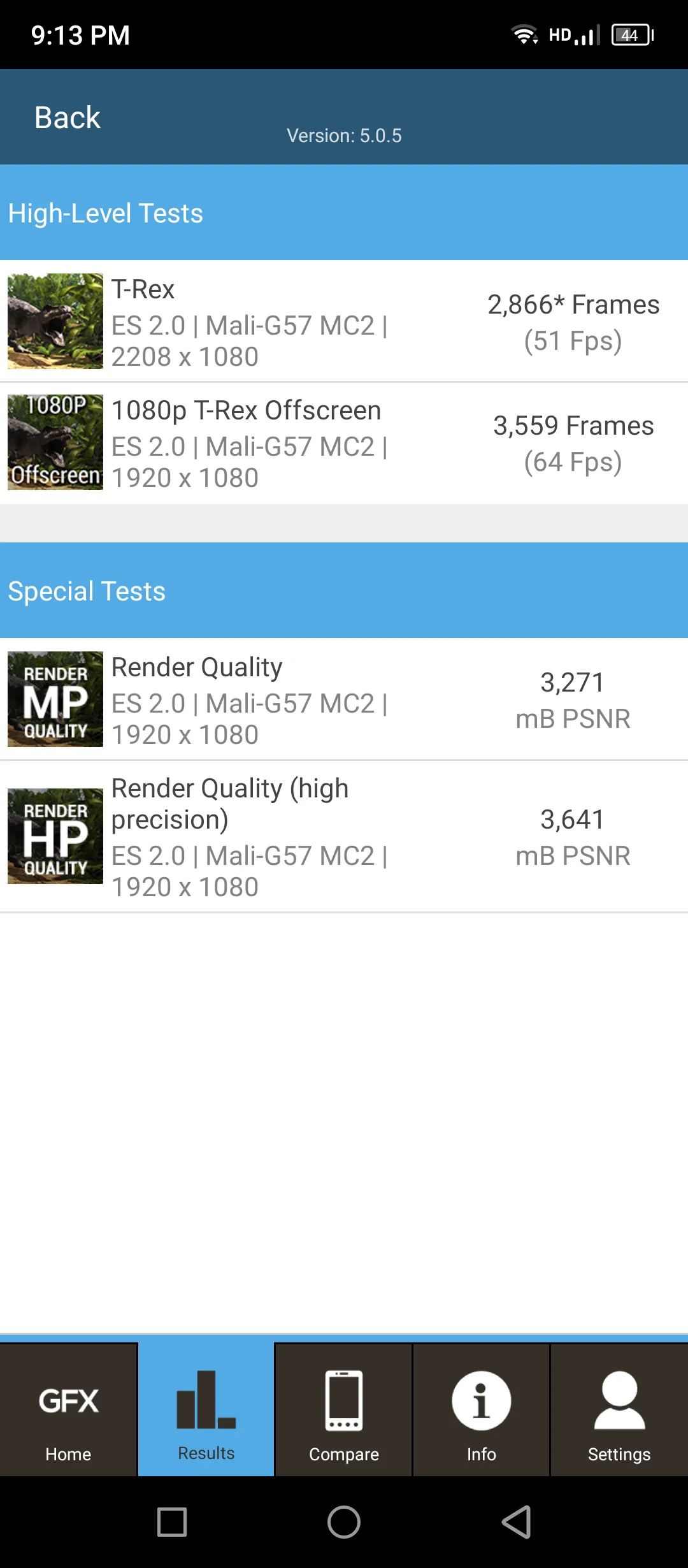 - Banc GFX, Test T-Rex à l'écran/hors écran : 51/64 FPS (avec rafraîchissement d'image de 120 FP)