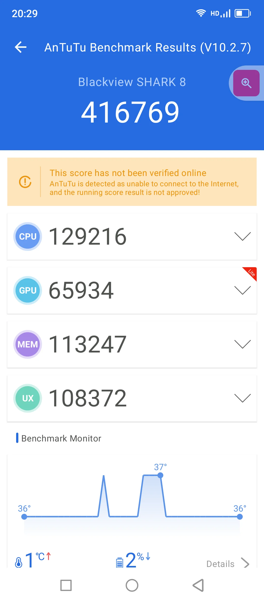 - Antutu V10: 416 769 points