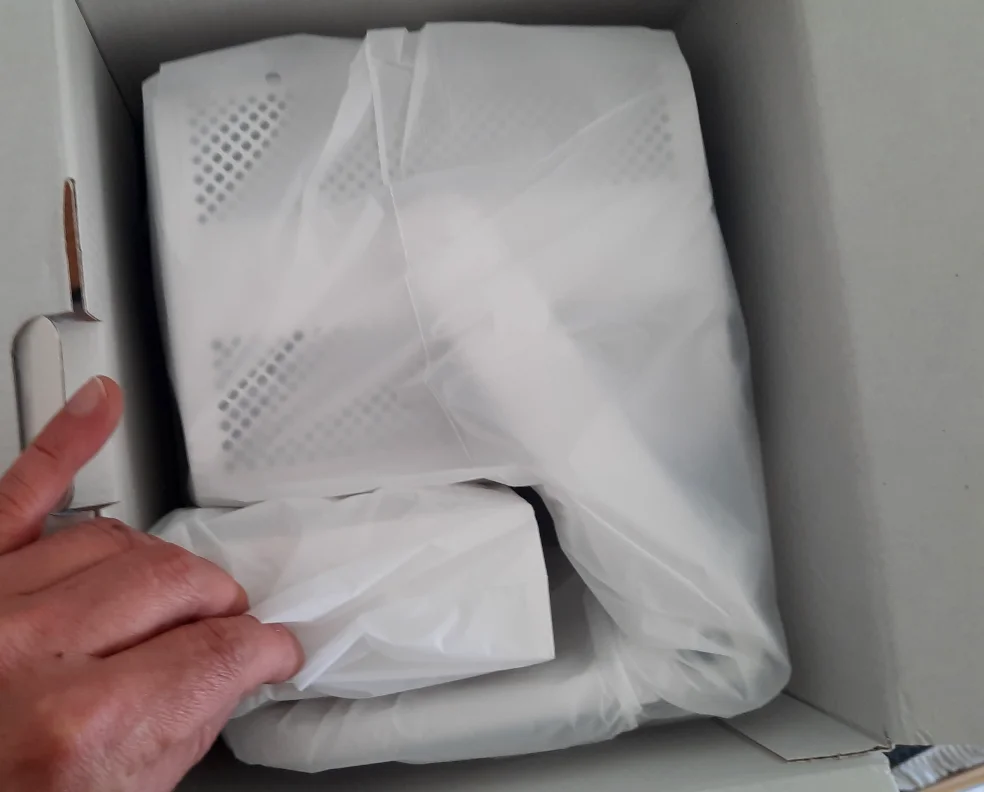 La boîte dans laquelle il est arrivé a tout simplement illuminé ma journée. Base blanche avec une photo saisissante et des éléments graphiques colorés de l'autre côté. Je n'avais tout simplement pas envie d'aller au-delà de la phase habituelle : « faisons-le exploser et voyons ce qu'il y a dedans ». J'ai fait de la place sur la table et j'ai posé la boîte dessus. Il était aussi mon invité, donc du point de vue d'un étranger, il a dû assister à une scène très soignée, alors que j'étais assis devant le paquet non ouvert placé au milieu de la table et, comme un philosophe stoïque, les mains jointes, j'observais la vue et ce qui se déroulait en moi en conséquence. J'ai ressenti de la joie et j'ai réalisé que ce n'étaient que les premiers moments ensemble, ce qui rendait encore plus excitant de voir où cette histoire allait tourner.