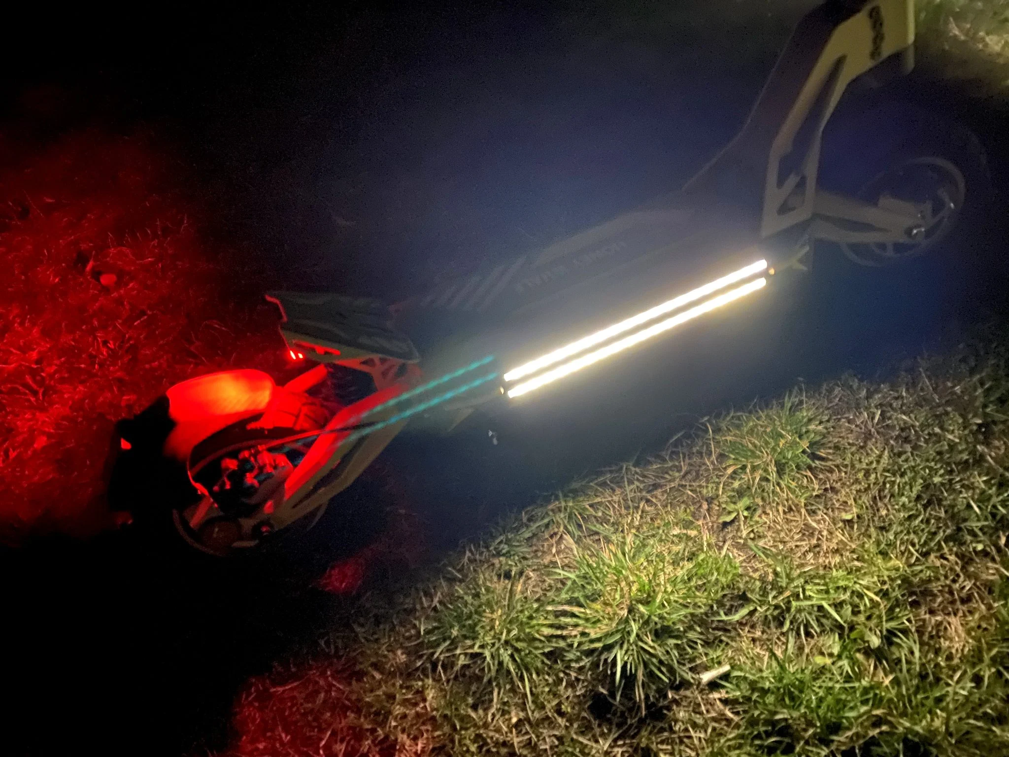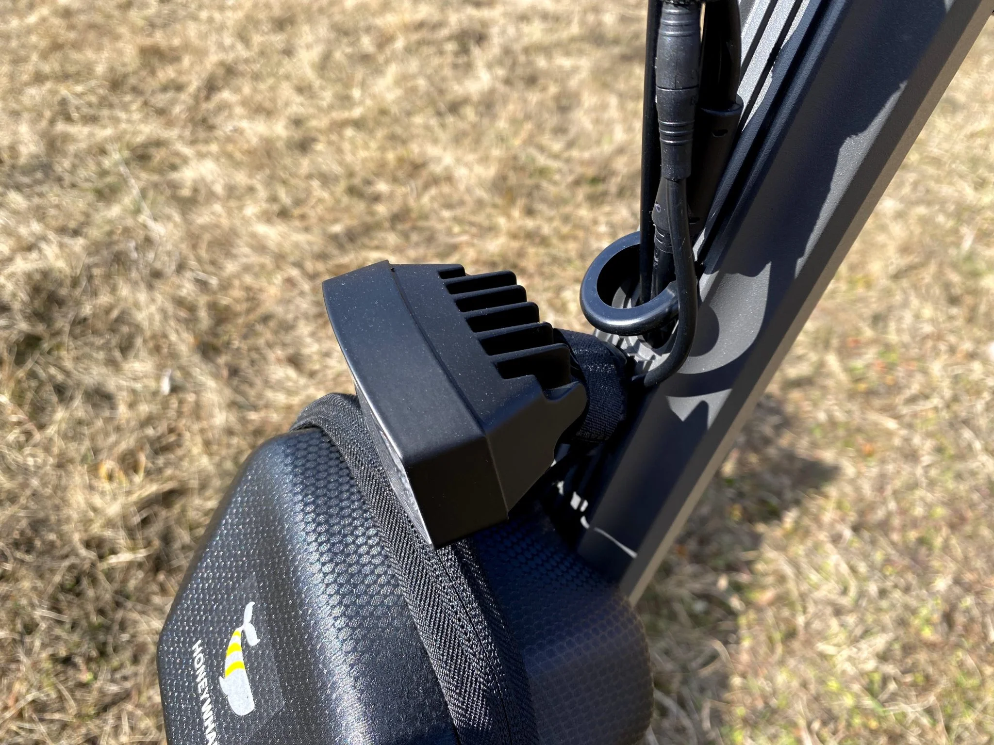À l'avant de la potence du guidon, vous trouverez une LED blanche classique, dans un boîtier carré au lieu d'un boîtier arrondi, tandis qu'à l'arrière, sous la pédale, il y a un feu stop rouge. Comme le nouveau ANGWATT F1, ils ont également été ajoutés au Honey Whale G2 Pro feux de signalisation, des deux côtés de la scène – l’un d’eux est tombé en panne relativement rapidement. Les clignotants ont été placés à côté des feux de position, dans un endroit bien visible.