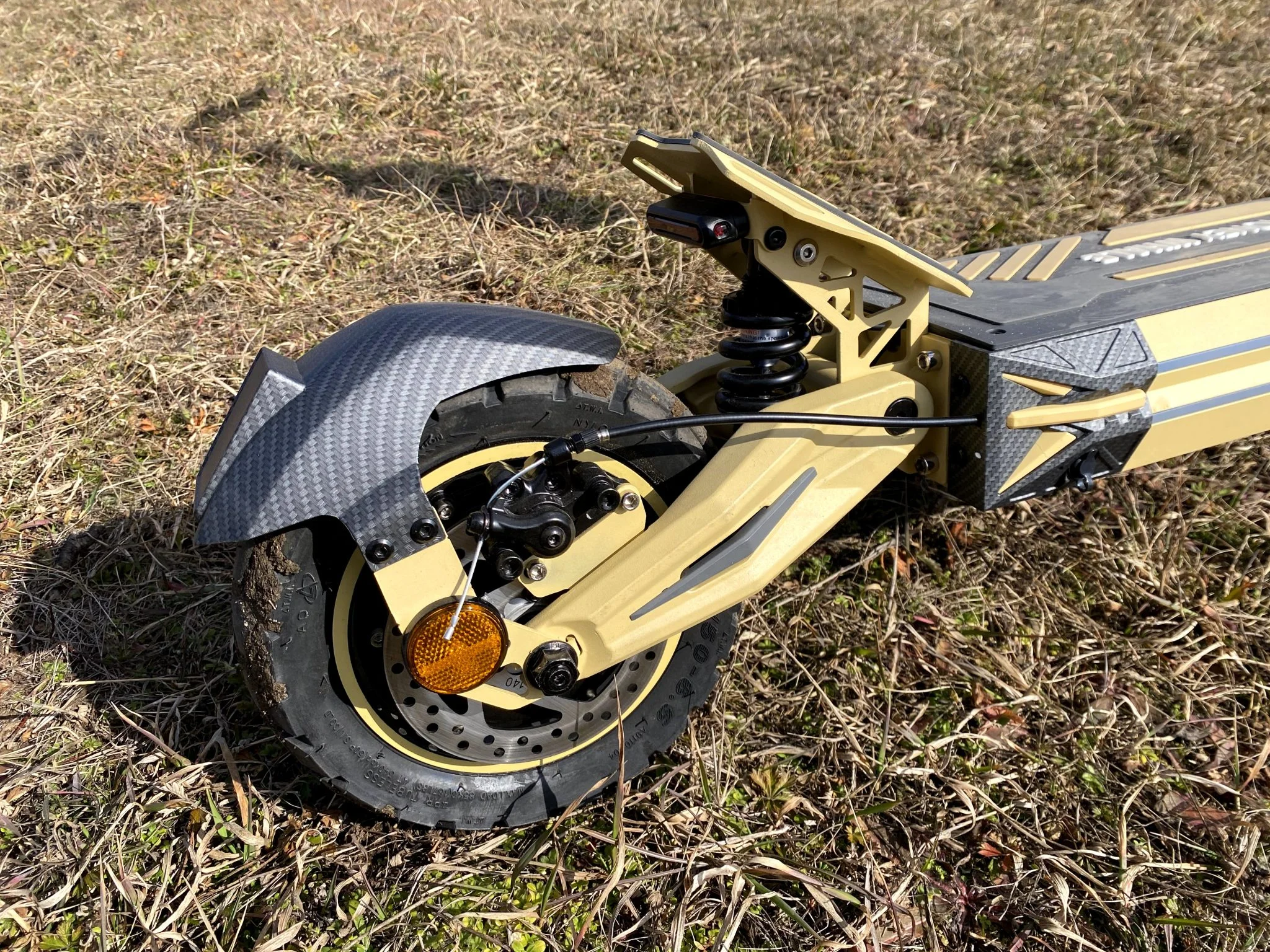 À propos de la vitesse de pointe de près de 40 km/h frein à disque aide à comprendre pourquoi le G2 Pro mérite le point noir suivant : le frein le plus sévère possible lui a été appliqué, qui ne peut être obtenu qu'en Chine. D'après l'expérience du service, il ne peut même pas être réglé correctement, mais le plus drôle, c'est qu'il n'y a jamais eu d'exemple où cela ne m'a pas aidé à m'arrêter à temps.