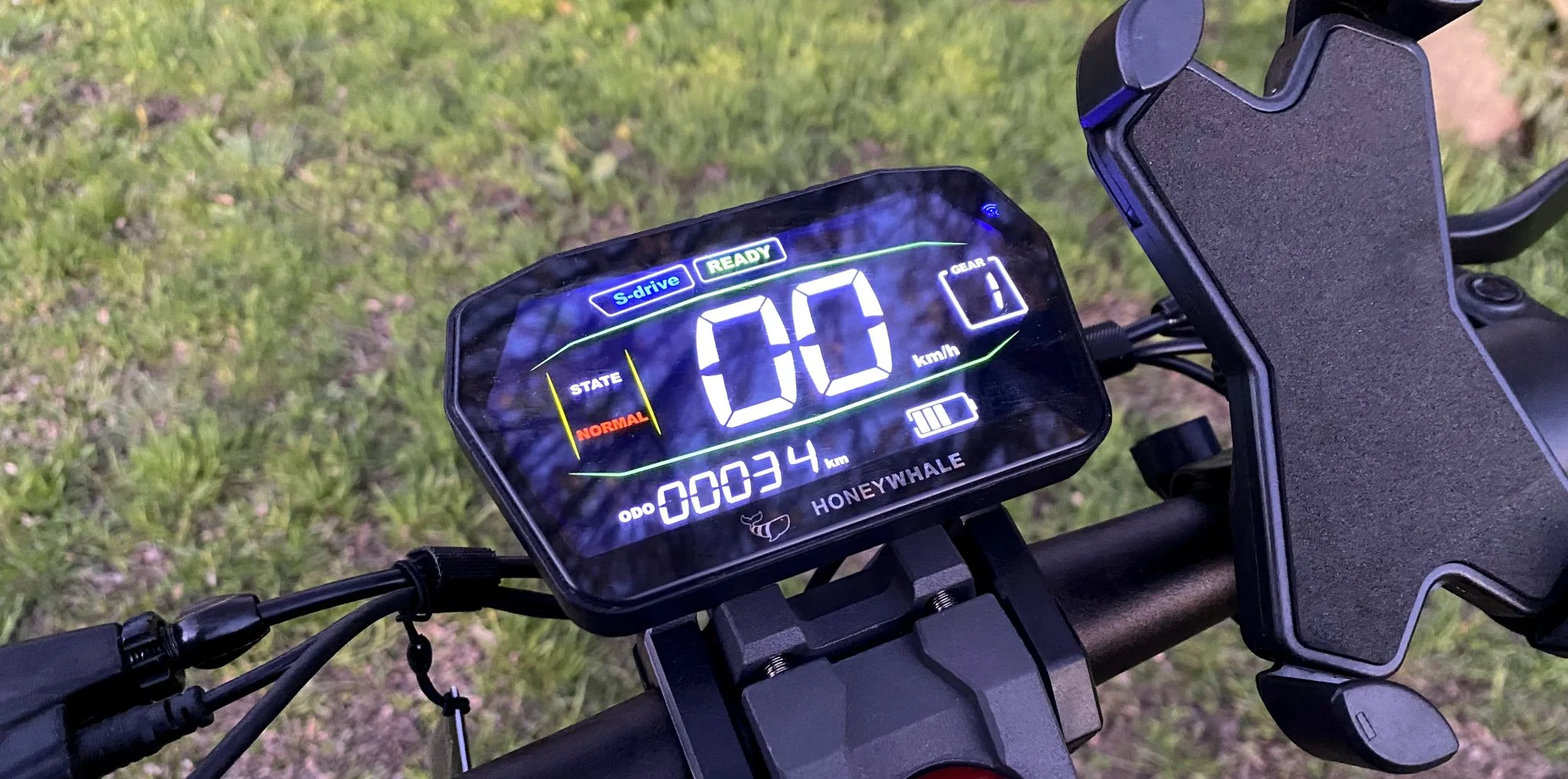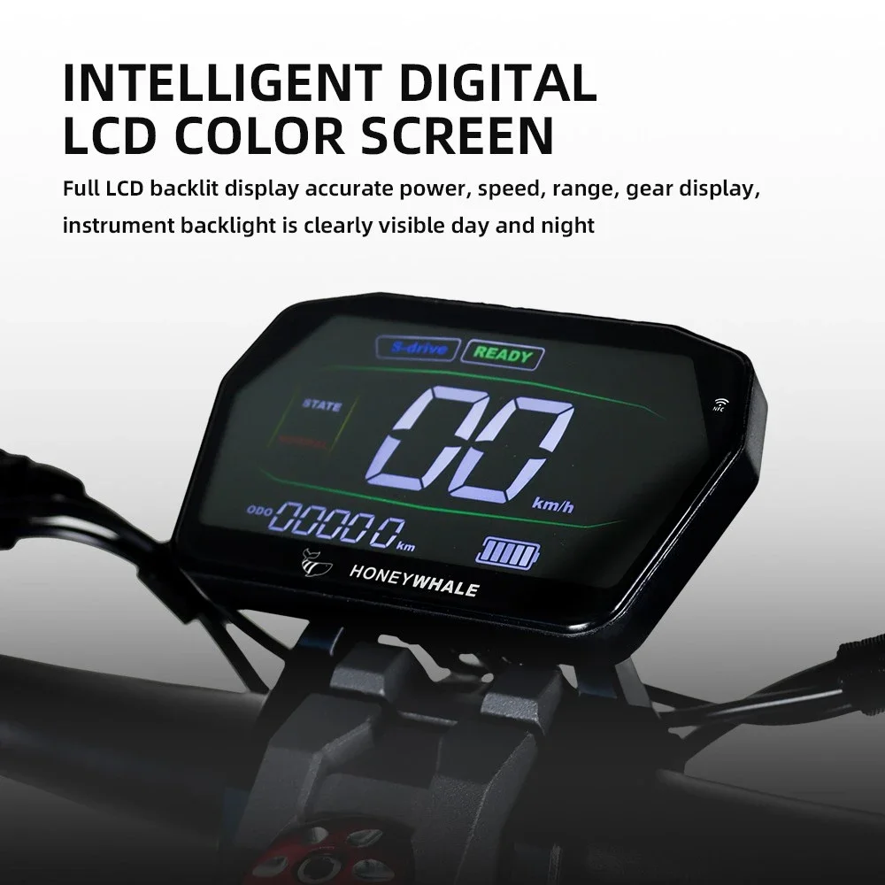 Honey Whale G2 Pro est intéressant affichage LCD reçu, pour lequel les couleurs sont très belles et le rendu est "lisse", non pixelisé, facilement visible en plein soleil. Vous devez toucher la carte NFC dans le coin supérieur droit après avoir appuyé sur le bouton d'alimentation. L'affichage affiche toutes les données de parcours classiques : vitesse actuelle, niveau de charge de la batterie, distance parcourue/totale, rapport sélectionné, index/feux/retour d'erreur. Le contrôleur du G2 Pro est également agréable et, bien que similaire à ceux trouvés sur la plupart des scooters, il est un peu plus grand que d'habitude et n'a pas de boutons inutiles comme sur la plupart des scooters électriques ANGWATT -