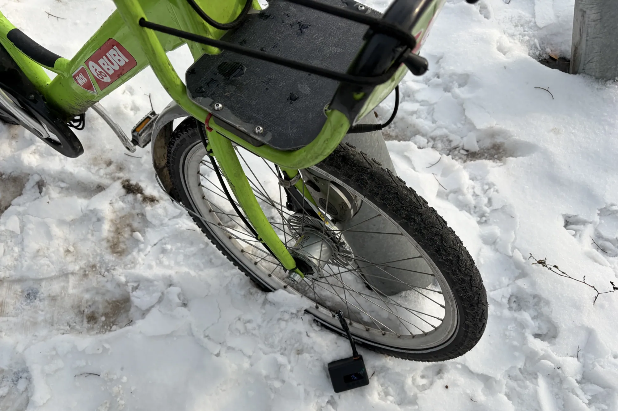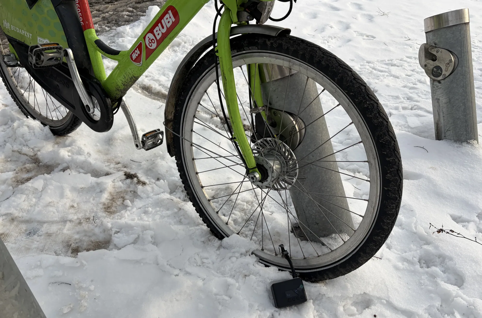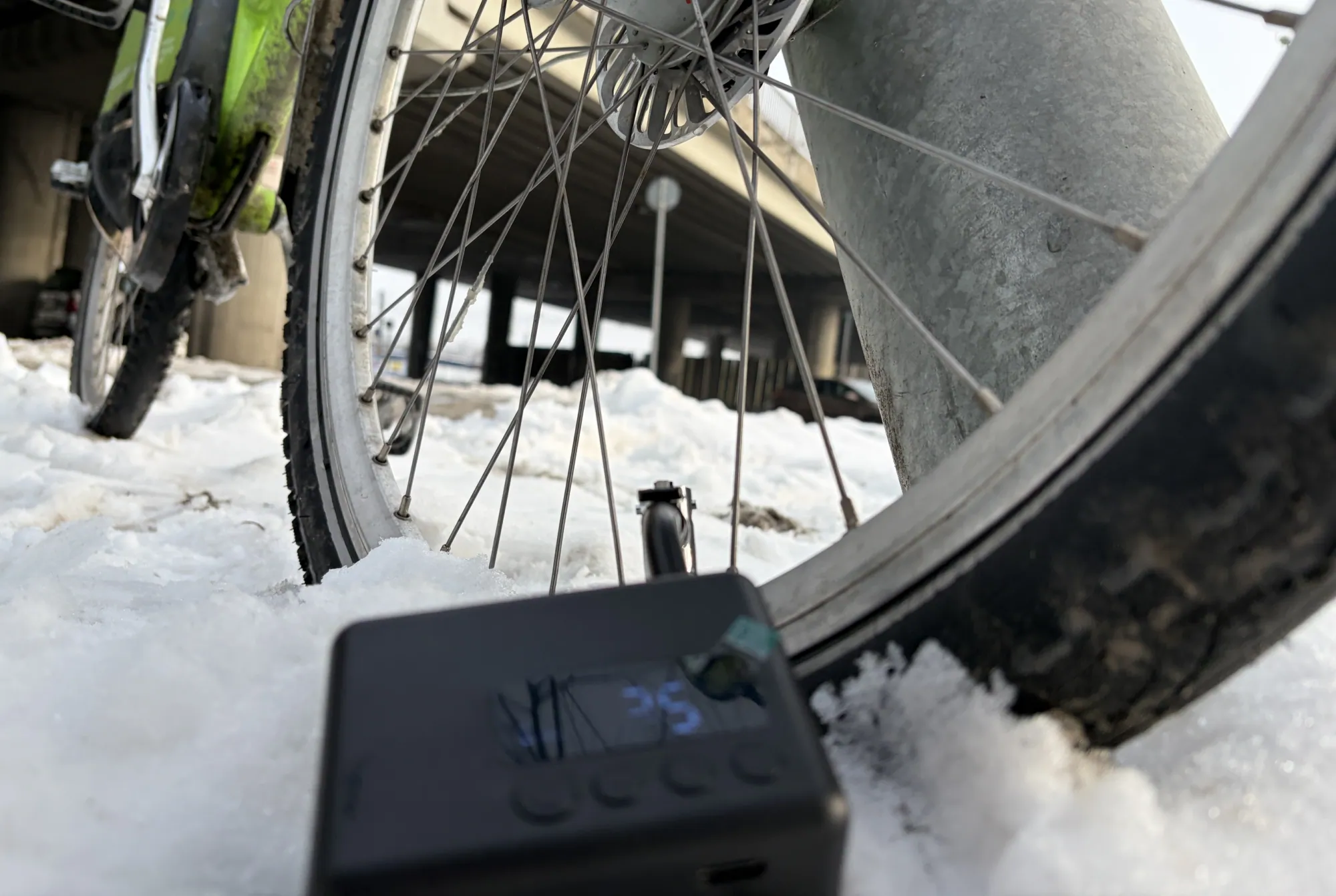Le deuxième essai fut concluant. La pompe LAOTIE Z11 s'adaptait parfaitement à la valve du vélo et, en quelques secondes, elle gonflait le pneu à bloc. Après ça, je me suis tellement pris au jeu du gonflage que j'ai décidé de vérifier la pression des pneus des Bubik du coin, tel un super-héros du quotidien, afin d'assurer la sécurité des usagers de la neige. Ce projet a permis de constater que… La pompe LAOTIE Z11 peut stocker suffisamment d'air pour gonfler environ 10 pneus. Bien sûr, cela varie d'un cas à l'autre. De plus, en cas d'utilisation continue, la chaleur générée à l'intérieur est si importante que lorsque j'ai dévissé le tuyau d'air après utilisation, la partie métallique était tellement chaude que je me suis brûlé la main. Cela m'a fait me demander : si j'avais conduit la LAOTIE Z11 autant par une chaude journée d'été, n'aurait-elle pas surchauffé ?