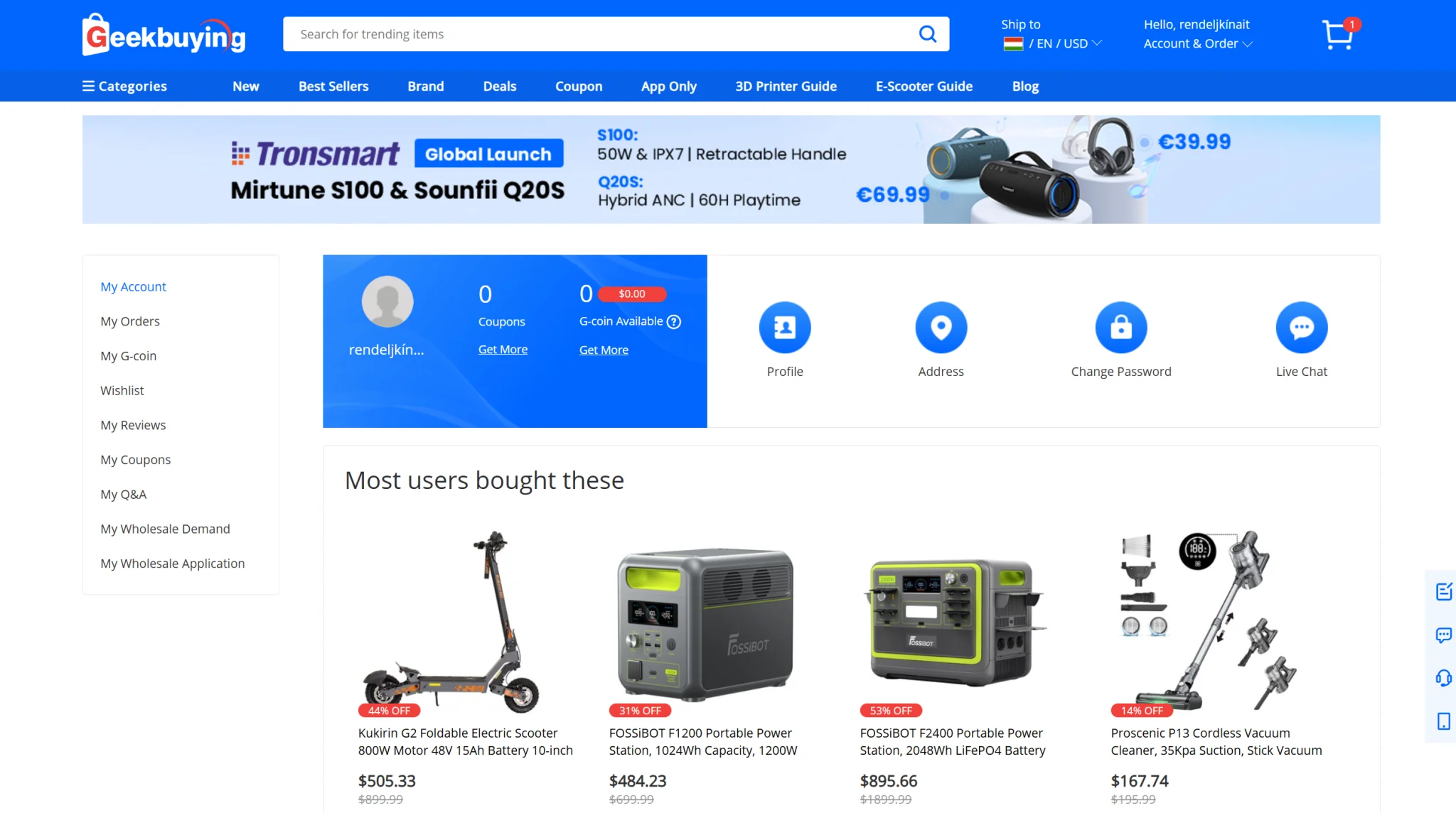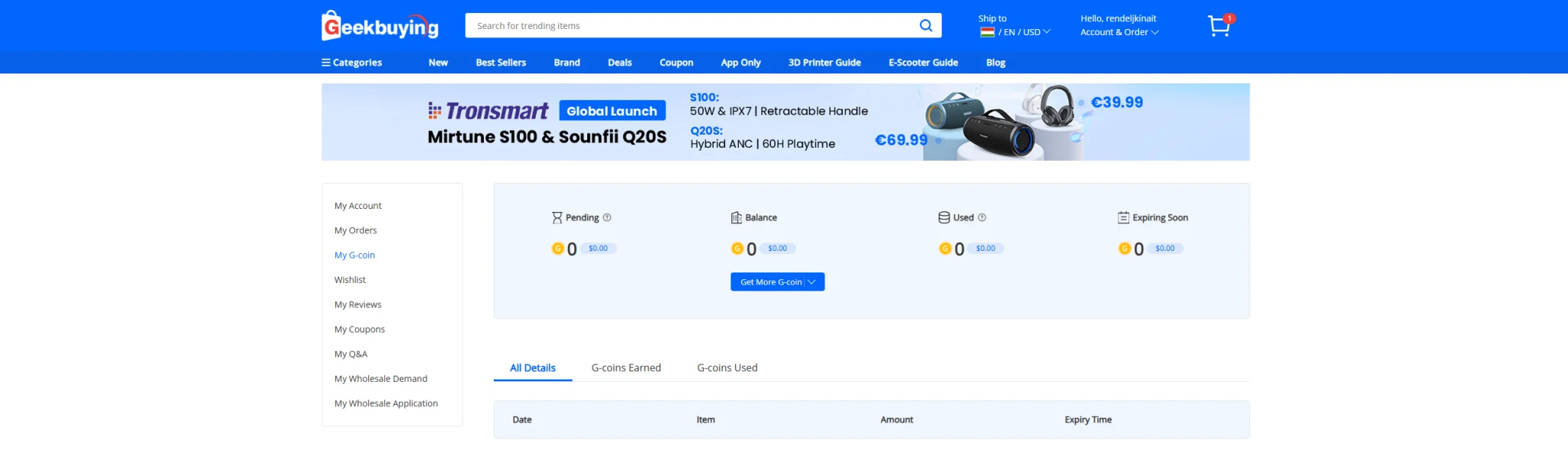 - de nombreux coupons, Geekbuying G-coins