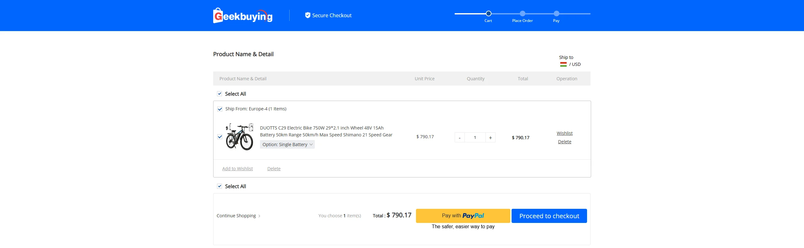 Dans le panier, vous pouvez toujours voir quel produit se trouve dans quel entrepôt, en haut à gauche Bateau de: peut être vu en partie Bien que Geekbuying ne l'indique pas séparément, la TVA a déjà été calculée dans le prix, d'autres sites Internet l'indiquent généralement avec l'inscription « TVA incluse ».