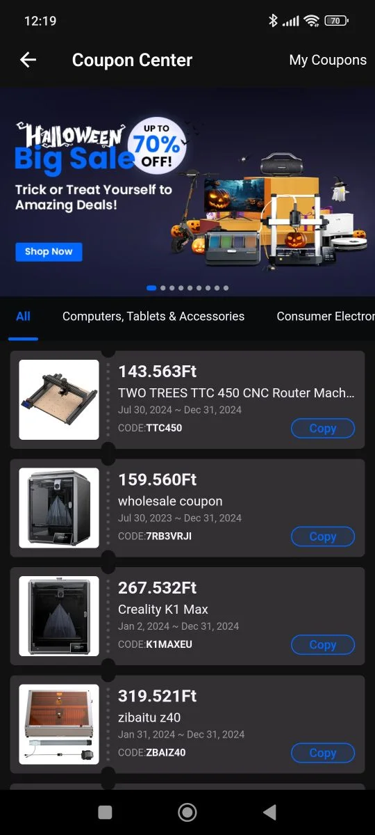 Il existe deux manières, soit sur la page Geekbuying, pendant les campagnes - elles apparaîtront ensuite sous l'élément de menu Mes coupons - soit vous pouvez surveiller la page RendeljKínait, puisque nous les publions également. Il y a souvent des coupons pour diverses activités, dans le passé il y avait des jeux de roue de la fortune et des jeux similaires, qui pouvaient également lancer des coupons.