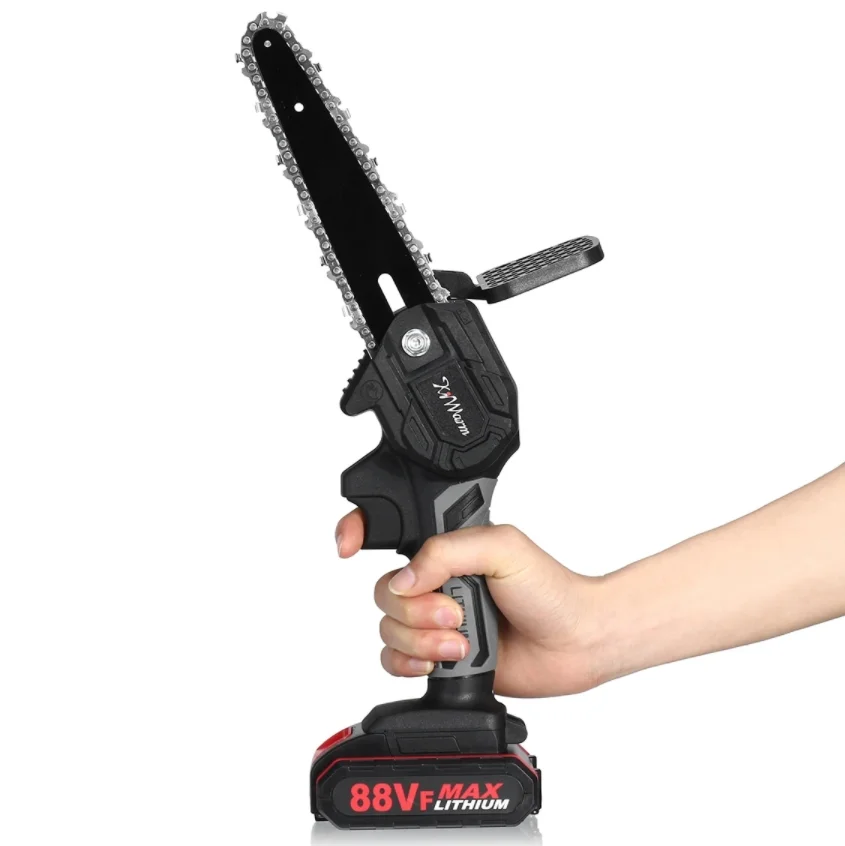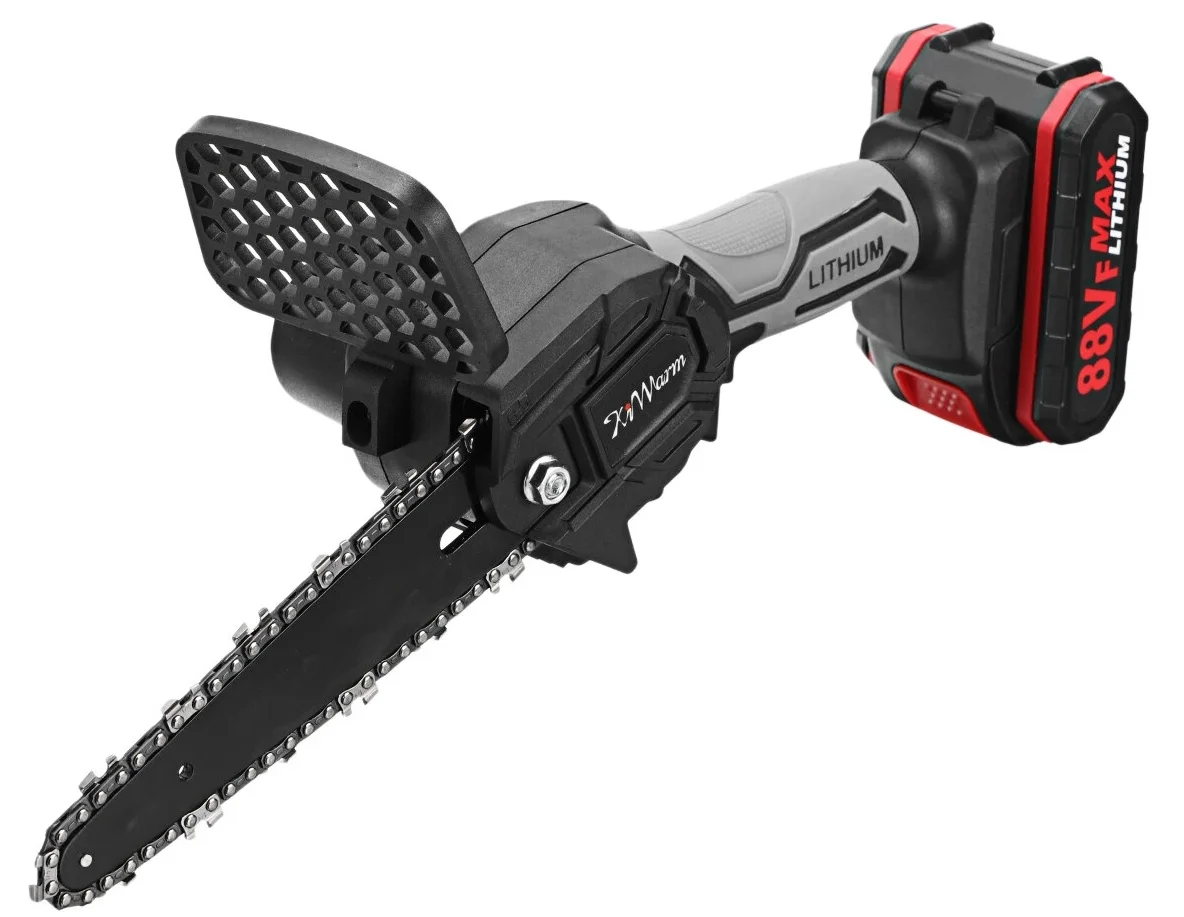 A működése nagyon egyszerű, az aljára kell felcsattintani az aksit, és a ravaszt meghúzva már pörög is rajta a lánc. Amire érdemes figyelni, hogy kell hozzá olajspray, hogy a lánckenés biztosítva legyen, mert ezt magától nem oldja meg a szerszám, valamint a munkavédelemre is érdemes nagy hangsúlyt fektetni.