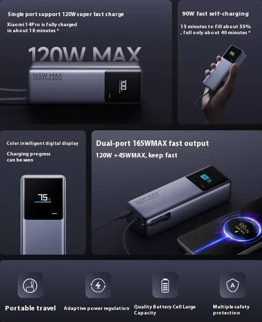 Előfordult már veled, hogy reggel 8-kor 96%-on volt a telefonod, de délre úgy nézett ki, mintha sose látott volna áramot? A Xiaomi 165 W-os power bankja pont az ilyen sztorikra lett kitalálva: nemcsak a mobilt, de akár a laptopot is életre pofozza simán. A kábel? Már rajta van. A teljesítmény? Elég, hogy egy Tesla is megirigyelje. Szóval ha eleged van a töltöttség-parából, itt az idő, hogy szintet lépj!