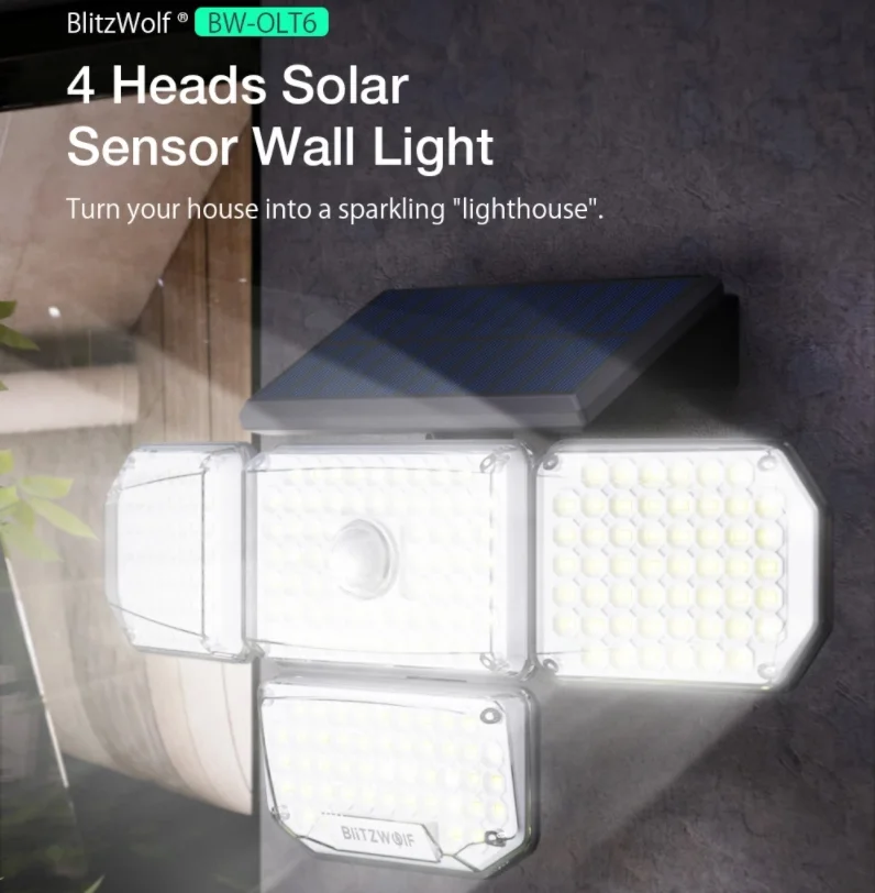 214 LED van az új mozgásérzékelős, napelemes BlitzWolf lámpán