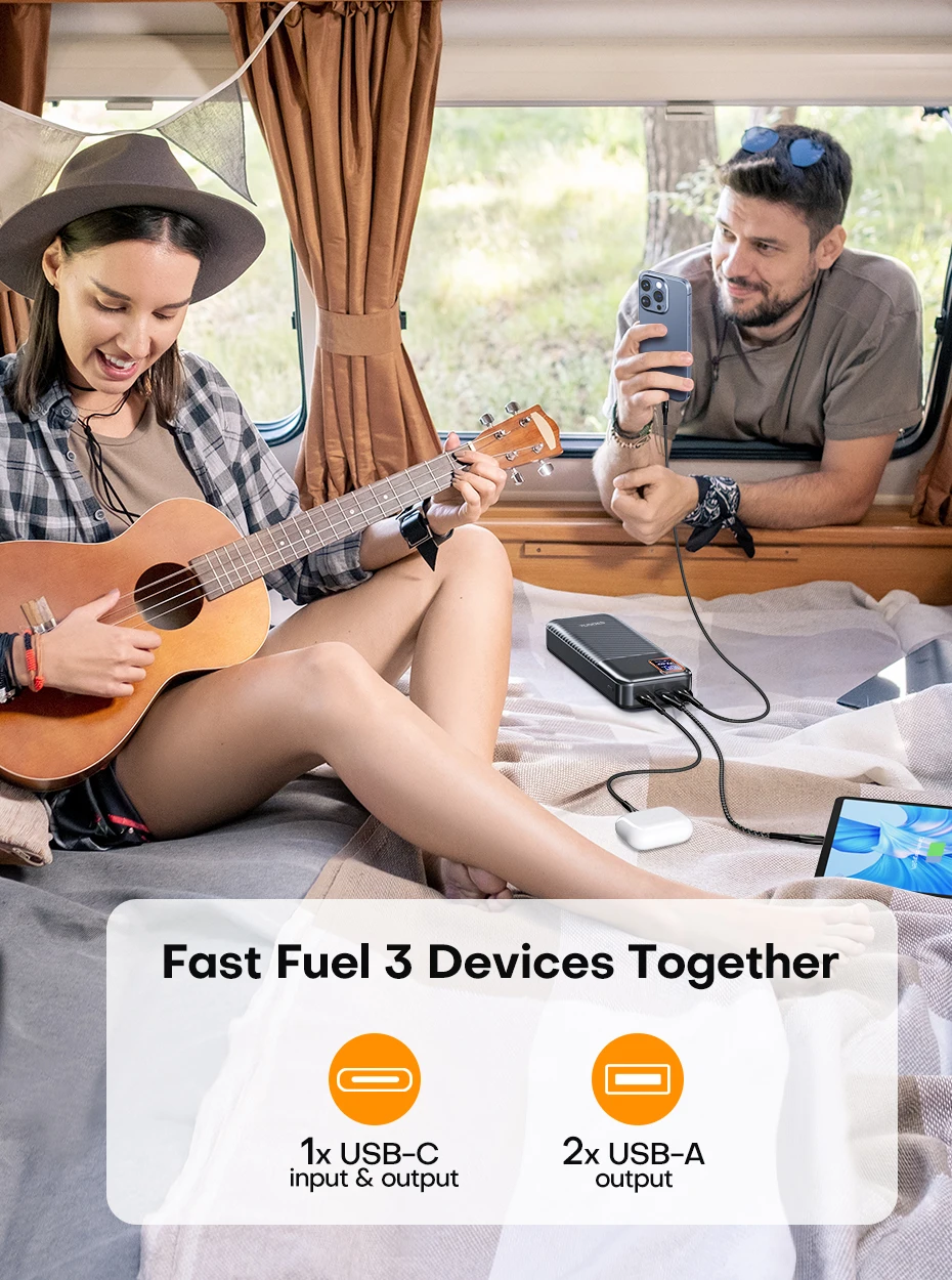A Tuodes power bank 10 és 20 Ah-s méretben, illetve fekete és fehér színben kapható. A műanyag házba bújtatott eszköz 4 portot vonultat fel, ezek közül kettő darab USB-A, amik 22,5 wattal tudnak tölteni, egy Type-C 20 wattos PD támogatással, ami bemenetként is szolgál, illetve egy micro USB csatlakozó, amin keresztül szintén tölthető az akkumulátor.