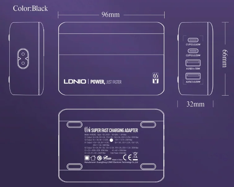 Az Ldnio jelen töltője biztosítja, hogy pár évig biztos nem kell erősebb kategóriára váltanunk, mert jelenleg ez egy felsőkategóriás tudású eszköz. Asztali töltőként hivatkoznak rá, és rendelkezik egy eltávolítható, másfél méteres kábellel, aminek a végére kell csatlakoztatni magát a töltőt.