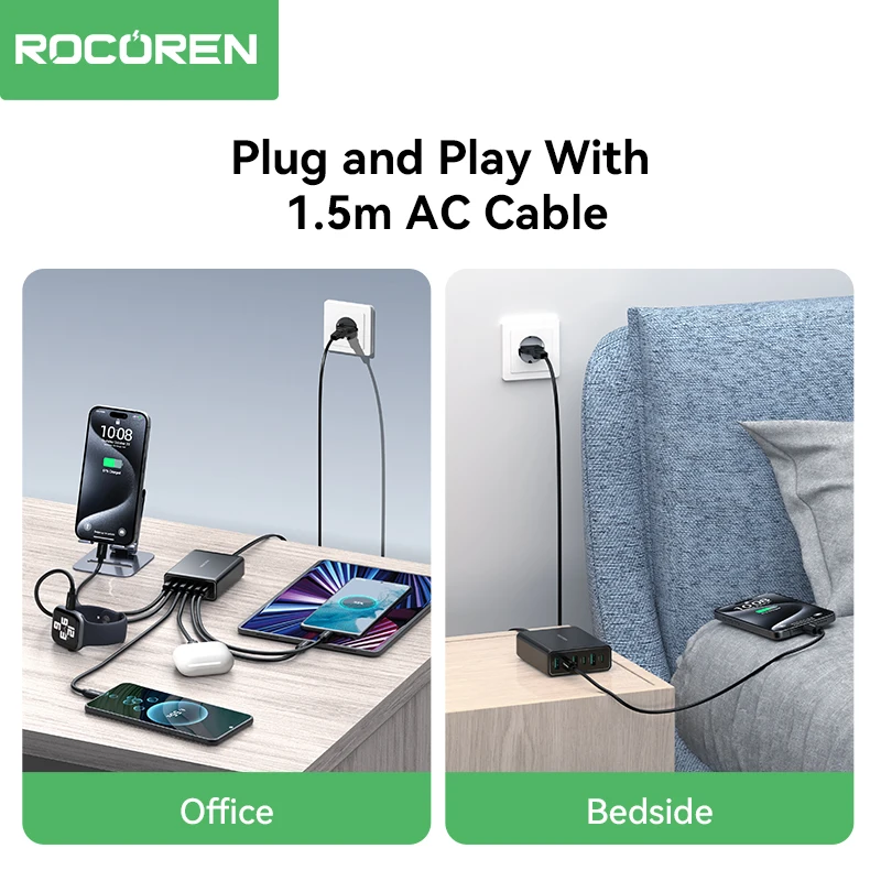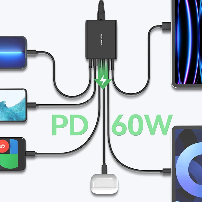 Ebben a modern digitális világban, ahol több eszközt használunk egyszerre, elengedhetetlen egy megbízható és hatékony töltő. A Rocoren 60 W-os eszköze nemcsak gyors töltést biztosít, de intelligens kialakításával egyszerre akár hat eszköz áramellátásáról is gondoskodik, mindezt kompakt méretben és stílusos megjelenéssel.