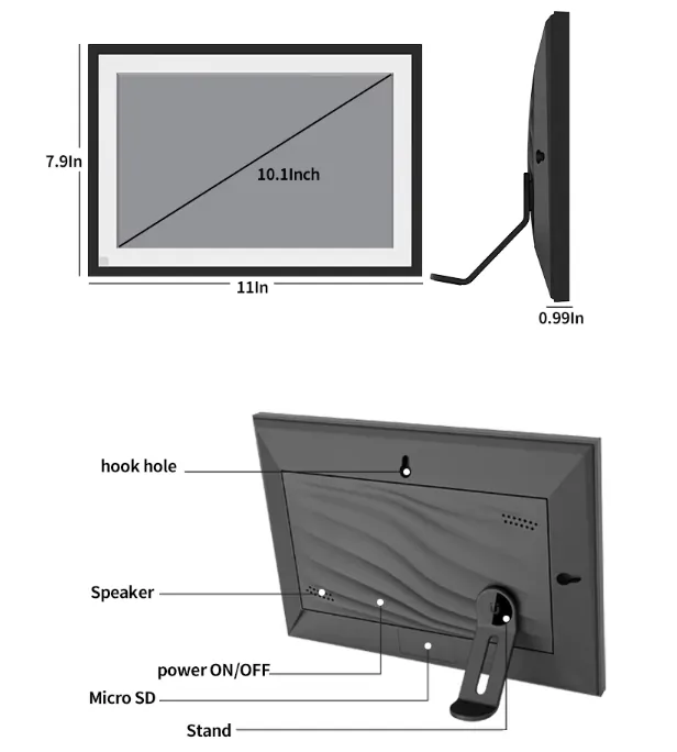 A Frameo digitális képkeret egy 10,1 hüvelykes IPS kijelzőt kapott, amely 1280×800 pixeles felbontáson mutatja a képeket és 300 lumen fényerőt biztosít. A képkeret automatikusan elfordul, így akár álló, akár fekvő képeket küldesz rá, szépen összerendezi magát. Bár a natív felbontás 1280×800, gond nélkül fogad 1920×1080-as fotókat is, sőt, a 30 FPS-es rövid videókat is simán lejátssza, ami ebben az árkategóriában ritka.