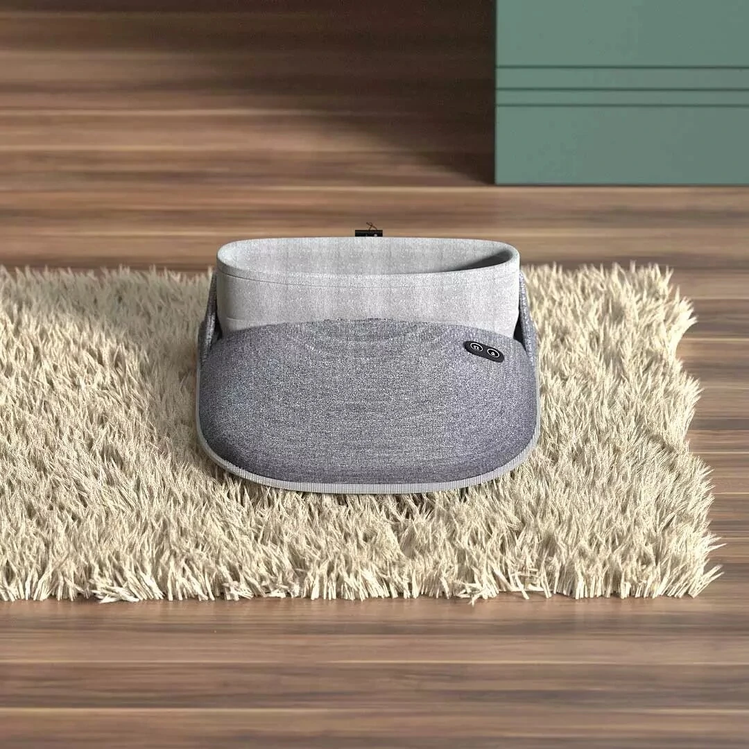 Masszírozni is képes a kütyü, négy fej van a talprészen, tehát talpanként jut 2-2 darab. A masszázs erőssége pedig szintén állítható. Nagyon egyszerű a vezérlése, mindössze két gomb van rajta.