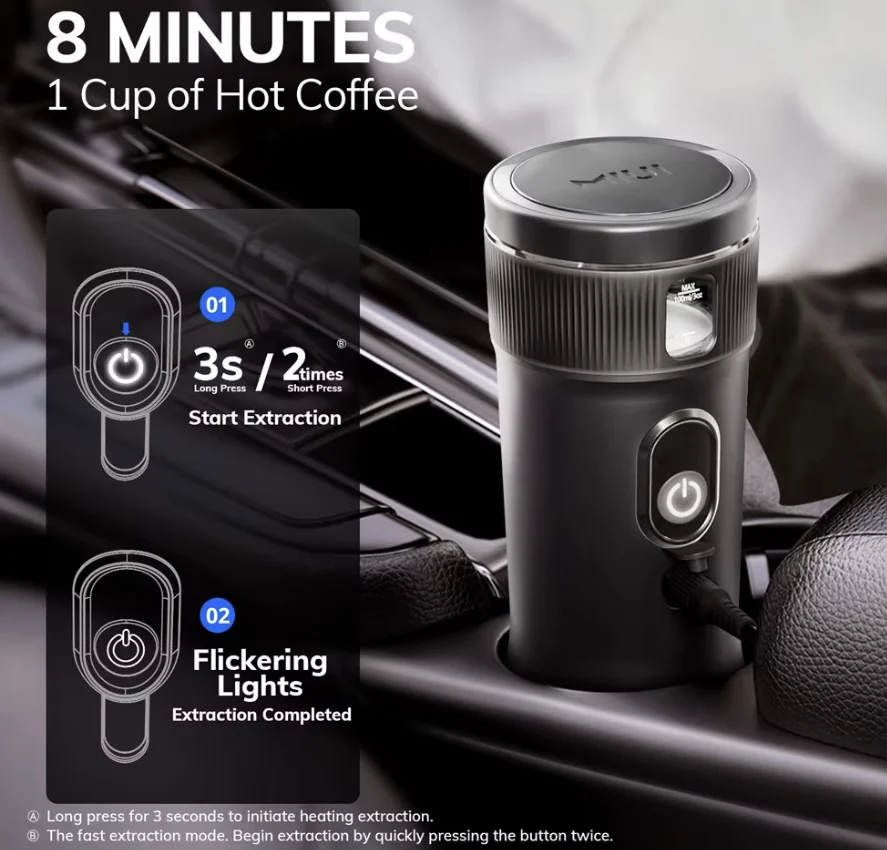 Ugye te is alig várod már újra az érzést, ahogy egy hegycsúcs tetején állsz, a nap épp csak felkúszik az égre, és a kezedben egy gőzölgő eszpresszó. Vagy egy hosszú autóút közepén, amikor már alig bírod nyitva tartani a szemed (oké ezt a részt nem várod annyira) és egyetlen gombnyomással elkészül a tökéletes kávéd. A MIUI hordozható kávéfőző pontosan ezt kínálja: minőségi kávéélményt, bárhol is legyél. Könnyű, és akár autóban is használható, a kávé szerelmeseinek kötelező kellék!
