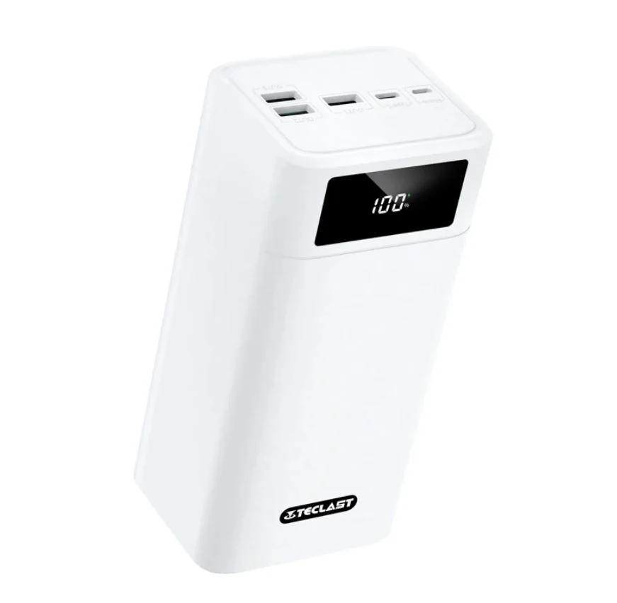 A Teclast A60 Pro egy igazi erőmű, a kapacitása 57 000 mAh, összesen öt porttal rendelkezik, van rajta egy micro USB, egy Type-C és három USB-A dugalj. Az eszköz töltése az első két porton keresztül lehetséges 18 wattal, míg energiát vételezni a három USB-A és a Type-C csatlakozókon keresztül tudunk, a maximális 22,5 W-ot viszont csak a Type-C tudja leadni. Lemeríteni nem könnyű, de cserébe a feltöltése is hosszú időt vesz igénybe.