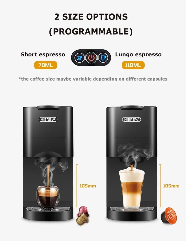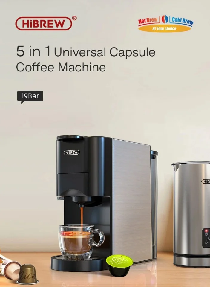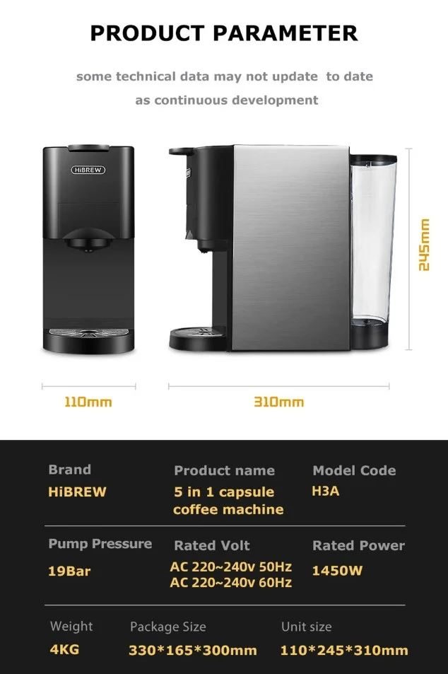 Több HiBREW kávéfőző is megfordult már a RendeljKínait szerkesztőségében, melyekről szinte csak jókat tudtunk mondani, így a H3A-tól is hasonló jókat várhattok, aminek a vásárlói értékelései is kiválóak. Ez egy 5 az 1-ben típusú készülék, amely kompatibilis a Nespresso, Dolce Gusto és K-Cup kapszulákkal, továbbá ESE párnákkal és őrölt kávéval is használható. Az 1450 wattos készülék fém borítást kapott, és nem foglal sok helyet, 110x245x310 milliméteres méretekkel rendelkezik, így könnyedén elfér a konyhában, egy kisebb irodában vagy akár a nyaralóban is.