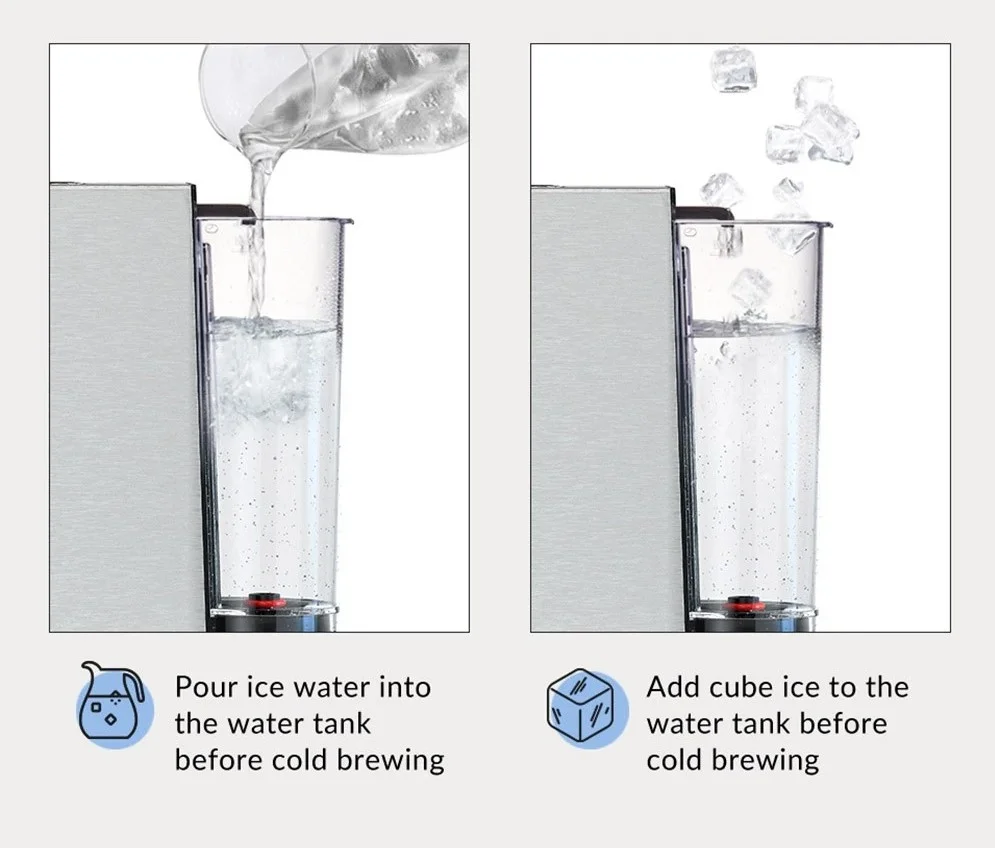A víztartályt a hátsó részen találjátok, amely egy literes és innen automatikusan adagolja a szükséges mennyiségű vizet magának a gép. A vezérlőgombok a tetején helyezkednek el, amelyekkel beállíthatjátok, hogy eszpresszó vagy lungo kávét szeretnétek-e főzni, és azt is, hogy hideg vagy meleg legyen a kávé. A gyártó az energiatakarékosságra is ügyelt, így a készülék 15 perc inaktivitás után automatikusan kikapcsol.