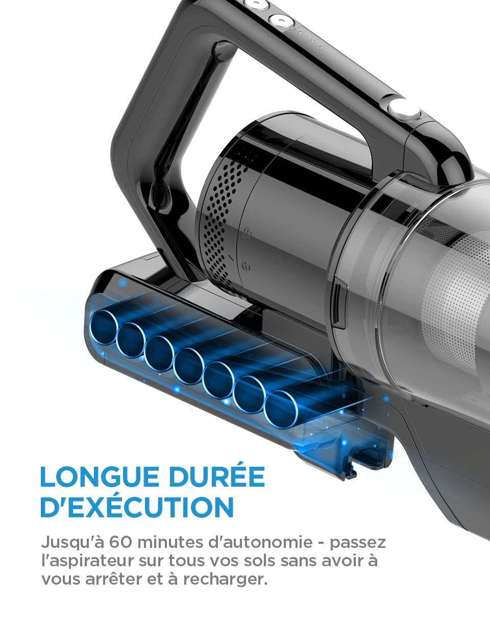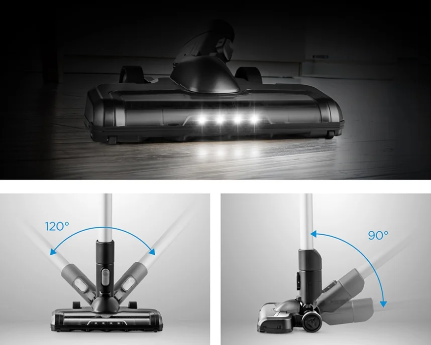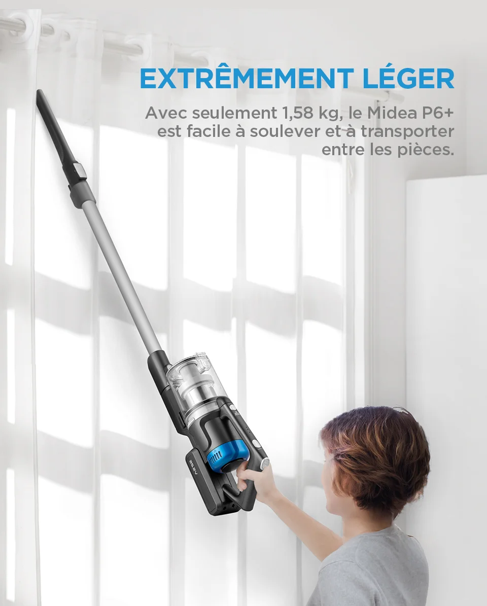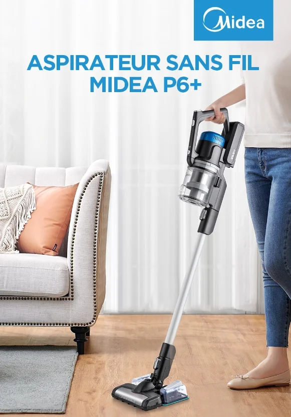 A Midea P6+ egy hagyományos akkumulátoros gépnek mondható, ami annyi pluszt kínál, hogy fel is lehet törölni vele. 20 000 Pa a maximális szívóereje, de a legritkább esetben fogjuk maximális fokozaton bömböltetni, mivel három lépcsőben állítható az erőssége és a legalacsonyabbon akár az egy órás üzemidő sem lehetetlen. Három darab visszajelző LED mutatja, hogy még mennyi energia van az akkupakkban, viszont kijelző nincs rajta. Egy motoros forgókefés fej is jár a géphez, és ennek LED-es megvilágítása van. Továbbá kapunk a csomagban kétféle szűkítőfejet is. A motoros fej mögé pedig fel lehet erősíteni a felmosótartályt, ami nedvesíti magát a mopot, így pedig képes a feltörlésre.