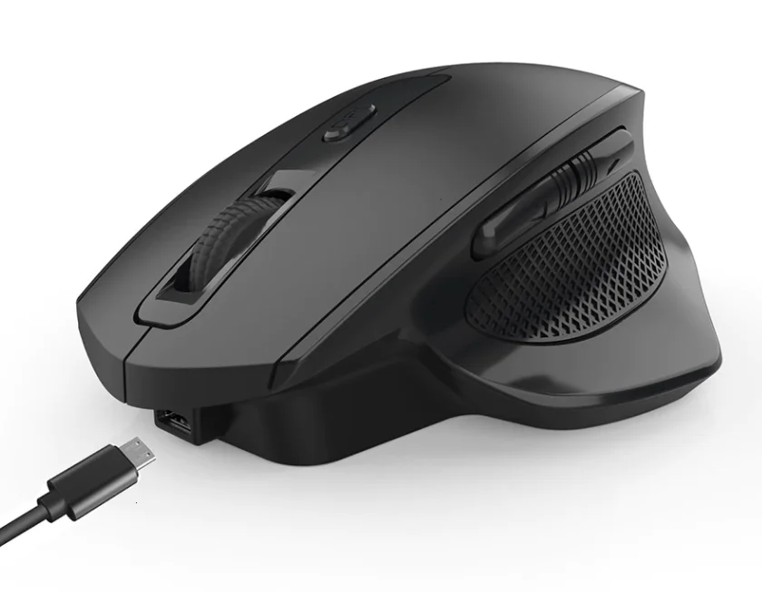 Először is, ez egy beépített akkumulátoros egér. 600 mAh kapacitású aksi van benne, amit micro USB porton keresztül tölthetünk. Tehát egy akármilyen töltő, power bank vagy USB port elég ahhoz, hogy feltöltsük. Van két hagyományos gombja és egy görgője, ami szintén lenyomható. Ezekkel szinte hangtalanul lehet kattintani, kifejezetten állítják az egérről, hogy halk működésű. A tetején még egy gombot láthatunk, ezzel a felbontást állíthatjuk 800, 1600 és 2400 DPI-re. Az oldalára is került két kapcsoló, ezek alapértelmezésben az előre és hátra funkciókat látják el, de letöltve az X-Mouse Button Control szoftvert, ezeket tudjuk programozni másra is.