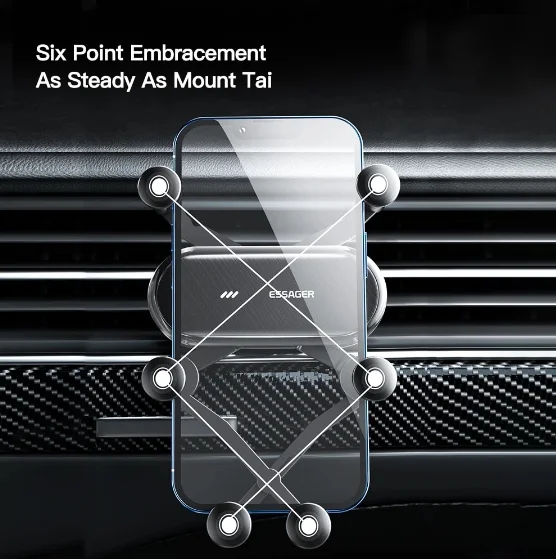 Az eszköz az autók légbeömlő rácsára csatlakoztatható egy gumírozott csipesszel. Gömbcsuklós kapcsolattal rendelkezik, aminek köszönhetően dönthetjük és forgathatjuk is tetszőleges irányba. A telefon a saját súlyánál fogva marad a helyén, hiszen belehelyezve a készülékünket lenyomja az alsó két támasztópontot, aminek köszönhetően a két-két oldalsó pofa is ráfog a telefonra. Ez a megoldás azért zseniális, mert így nem mozog benne a telefon, mégis egy kézzel beletehetjük és a kivétel is nagyon egyszerű, szintén egykezes projekt. 4,7 ás 6,7 inch közötti telefonokat lehet beletenni, a közepén pedig teljesen szabadon van az alja, ami garantálja, hogy használat közben tölteni is lehessen.