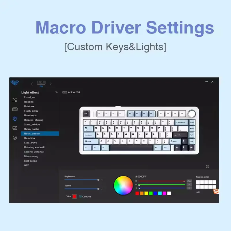 A tartósság terén sincs kompromisszum: az AULA F75 Cherry-profilú, dupla lövéses PBT keycap-ekkel érkezik, amelyek hosszú élettartamot és kopásállóságot kínálnak. A látványról pedig a 16,8 millió színt megjeleníteni képes RGB háttérvilágítás gondoskodik, amely bármikor az aktuális hangulatodra szabható. Az AULA F75 tehát nemcsak halkabb és kényelmesebb a hagyományos billentyűzeteknél, hanem sokkal tartósabb és látványosabb is.