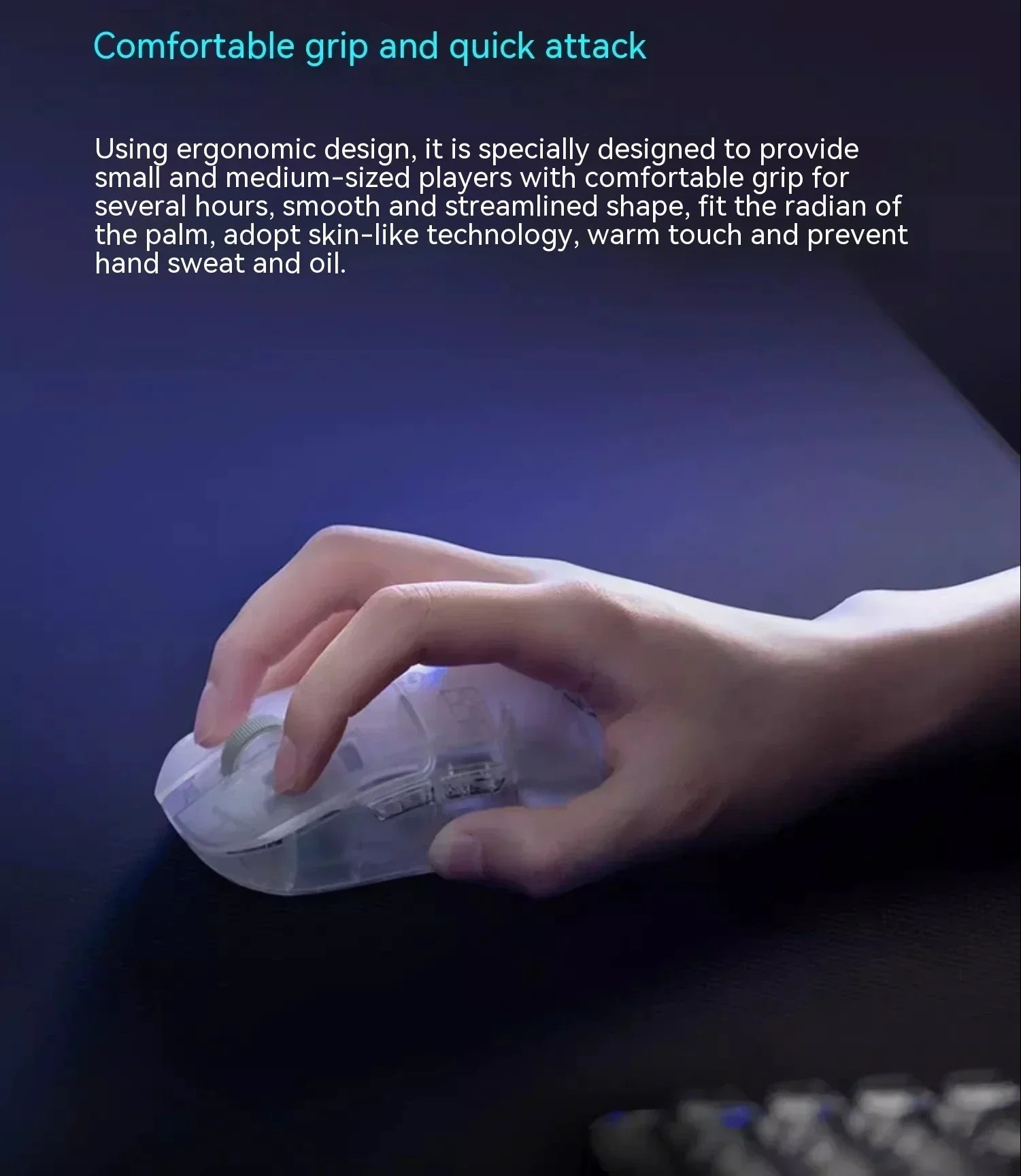 A kattintásokért a Kailh GM 8.0 mechanikus mikrokapcsolók felelnek, amelyek 80 millió kattintásra vannak hitelesítve, vagyis hosszú éveken át bírják a strapát. Az ergonómiai kialakítása főként claw grip és fingertip fogásra optimalizált, így ha ezekkel játszol, akkor az egyik legkényelmesebb választás lehet számodra. Természetesen az RGB világítás sem maradt ki, amelyet szoftveresen személyre szabhatsz, vagy akár teljesen ki is kapcsolhatsz, ha minimalistább dizájnt preferálsz.