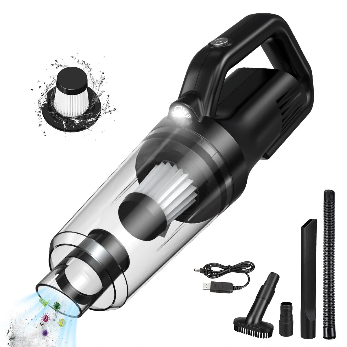 A portartály mérete nyilvánvalóan korlátozott, mindössze 0,53 literes, de a 20 perces üzemidő alatt ennél sokkal több port úgyis szinte lehetetlen összeszedni. Tölteni a mellékelt USB kábellel lehet, tehát számítógépről vagy akár egy power bankről is megetethető. A HEPA szűrője kivehető és mosható, szóval ezzel sem lesz gond hosszú távon.