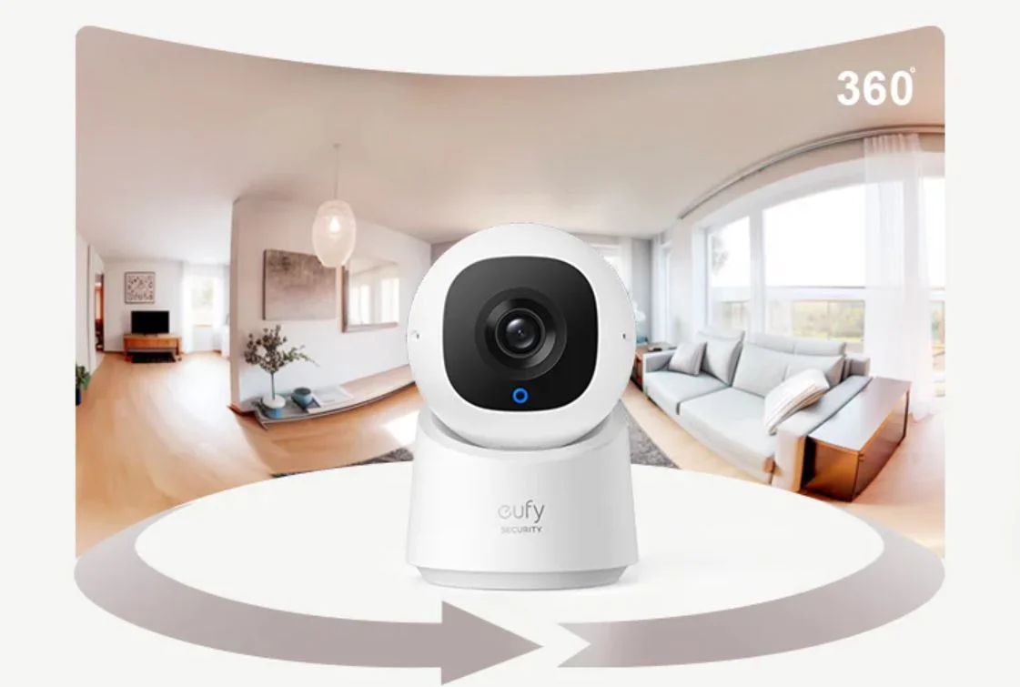 A kütyü egy fejlett 2K-felbontású kamera, aminek egyik hatalmas előnye, hogy 360 fokban körbe tud fordulni. Az Eufy C220 saját fejlesztésű algoritmusa alapján képes figyelni és érzékelni minden mozgást az otthonunkban. Viszont, amikor a diszkrét mód be van kapcsolva, a kamera a fal felé fordul, vagy bárhová, ahová eredetileg beállítottuk, majd kikapcsol és leállítja a felvételt. 2K-s felbontású, széles látószögű az objektív, amely részletes képet nyújt, emellett négyszeres digitális zoomra képes, akár úgy is, hogy közben 360°-os pásztázást és dőlést végez. Nappali fénynél már 6 méterről érzékeli a mozgást, ez éjszaka eltér némileg.