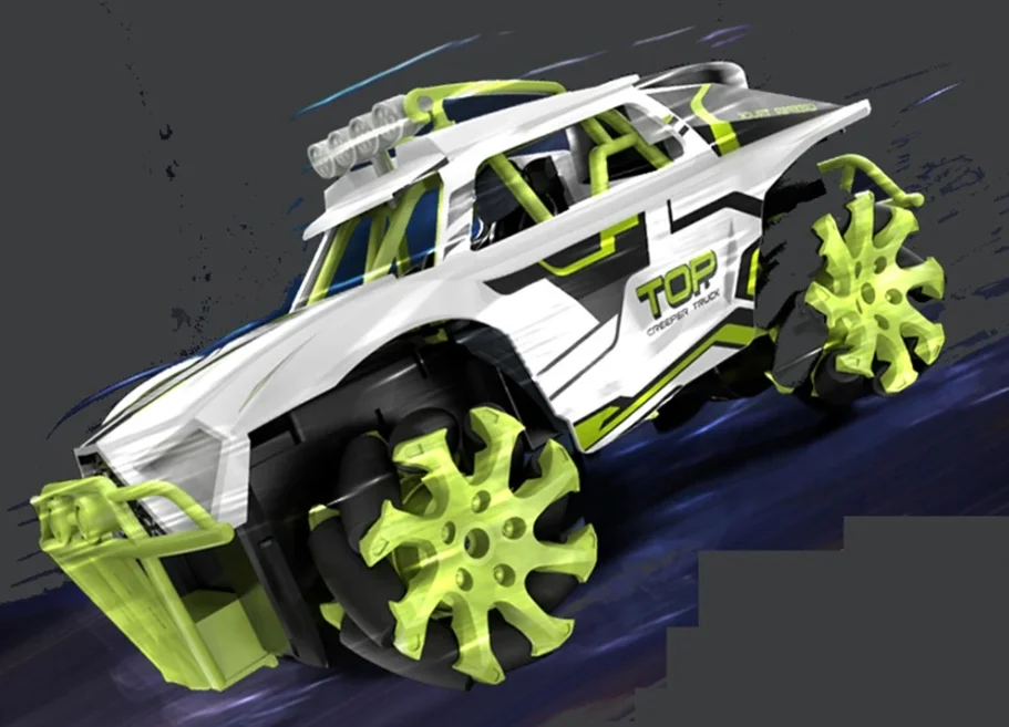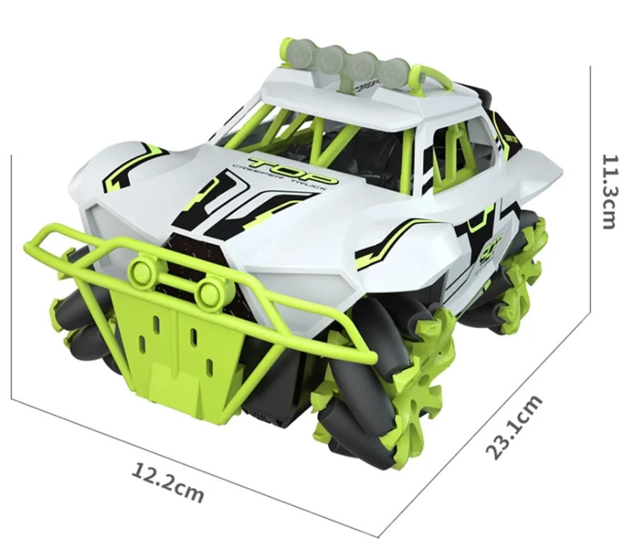 Egy belevaló gyerek jó pár RC autót leharcol addig, amíg fel nem nő annyira, hogy tudja, hogyan kell ezekre vigyázni. Addig játszhat a filléres variánsokkal, mint például ez a kínai autócsoda. Ennél a modellnél igazán szabadkezet kaptak a tervezők, épp ezért őrült formájú lett a járgány, de szerintem egészen megkapó, a színei pedig szintén extrák a neonzöld kiegészítőkkel. 1:20 méretarányú, 23,1 centiméter hosszú és 12,2 centiméter széles.
