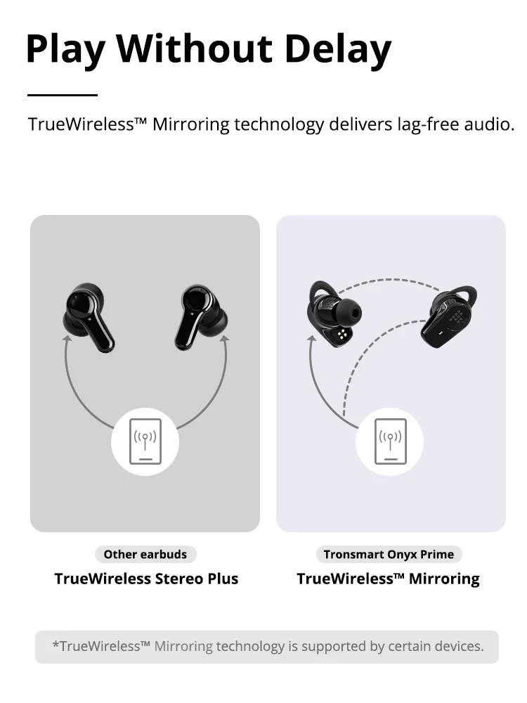 A Tronsmart Onyx Prime tavaly februárban jutott el a szerkesztőségünkbe. Ha kíváncsiak vagytok a róla készült részletes tesztünkre, akkor kattintsatok erre a linkre, így minden fontos információt megtudhattok a készülékről. A füles gumiharangos kialakítást kapott, emellett extra szilikon szárakkal is ellátták, így még stabilabban fog benne maradni a fületekben, vagyis még sportolás közben sem kell aggódnotok amiatt, hogy elhagyjátok. Qualcomm QCC3040-es chippel vértezték fel, ami aptX Adaptive támogatással rendelkezik, mely a dinamikus meghajtókkal együtt biztosítja a lenyűgöző dallamokat.