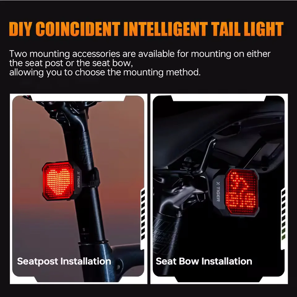 Az X-TIGER WD-17 egy olyan bringás hátsó lámpa, amit első ránézésre lehet, hogy csak egy menő kütyünek gondolsz – de ha kicsit jobban megismered, simán benne van, hogy a kedvenc kiegészítőd lesz. A legnagyobb dobása az, hogy saját, egyedi mintát is beállíthatsz rajta. Igen, tényleg. Akár egy kis arcot, szöveget, jelet – amit csak szeretnél. Ezzel nem csak jobban látszol az úton, hanem azonnal kitűnsz a többiek közül is. Beépített fékszenzorral dolgozik, vagyis ha lassítasz vagy megállsz, automatikusan erősebbre vált a fény, így a mögötted haladók azonnal tudják, hogy fékezel. Ez főleg sötétben vagy városi forgalomban lehet életmentő. A cucc egyébként ABS műanyagból készült, tehát könnyű, de bírja a strapát, és az IPX6 vízállóságnak köszönhetően simán átvészel egy nyári záport is.