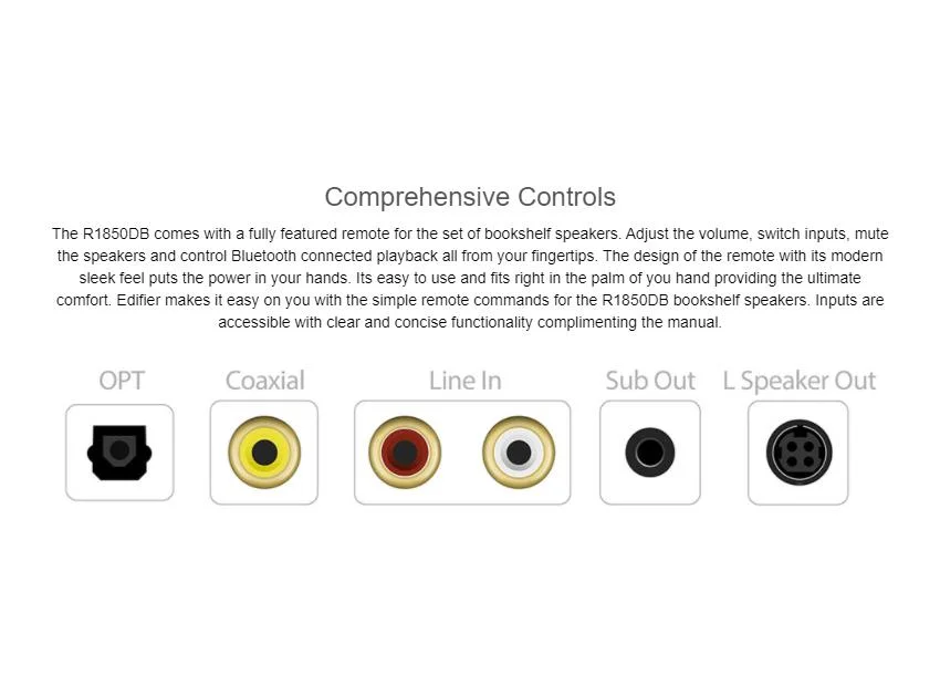 A sztereó hangfalpár kétutas egységekkel rendelkezik. 19 mm-es silk dóm felel a magas hangokért és egy 116 mm-es meghajtóra kerülnek a mély hangok. Az elején bass reflex nyílással, illetve az előlap 10 fokos dőlést is kapott, így irányítva a hangot. A dobozok fából (MDF) készültek természetesen, az előlapja pedig úgy is gyönyörű, ha rajta hagyjuk a porvédő szövetet, de ha ezt lepattintjuk, akkor mutatja meg a valódi szépségét. A hátoldalon lehet állítani potméterekkel a hangerőt, a basszust és a magas hangokat. Adnak hozzá egy távvezérlőt is, de azzal csak a hangerőt lehet állítani, illetve a hangforrást és a számváltást. Bluetooth-szal szerelt a hangfal, tehát könnyedén összekapcsolhatjuk vezeték nélkül a telefonunkkal vagy számítógépünkkel, de vezetékkel is rácsatlakozhatunk. Van rajta két pár RCA bemenet, egy optikai és egy koaxiális csatlakozó, továbbá egy mélynyomó kimenetet is kapunk, ha fejleszteni akarnánk a rendszert.