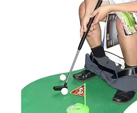A zöld alapot szépen körülöleli a toalett hideg kerámiája, a célzás pedig precizitást, fókuszt és némi egyensúlyérzéket igényel. A budigolf tehát nemcsak egy játék, hanem életérzés – a szabadidő és a szentség profán határán. A gyártó szerint tökéletes ajándék apának, pasinak vagy annak az ismerősnek, aki már minden hasznos dolgot megkapott, és ideje valami… maradandót adni neki. Sőt. Kiváló választás vezetőknek is: egyszerre fejleszti a fókuszt és biztosítja a munkahelyi harmóniát – különösen, amíg a főnök a „zöldön” gyakorol, a többiek pedig végre fellélegezhetnek.