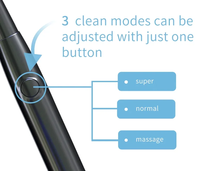 Az Aliexpressen többféle XFU fogkefét is lehet kapni, de az akcióban az XF20-as modell vesz részt. Ez egy viszonylag egyszerű szónikus fogkefe. Egyetlenegy gomb van rajta, ezt nyomogatva tudunk váltani a különböző módok között. Van masszázs, normál és szuper mód, melyek a sebességben különböznek.