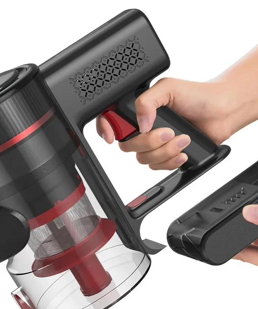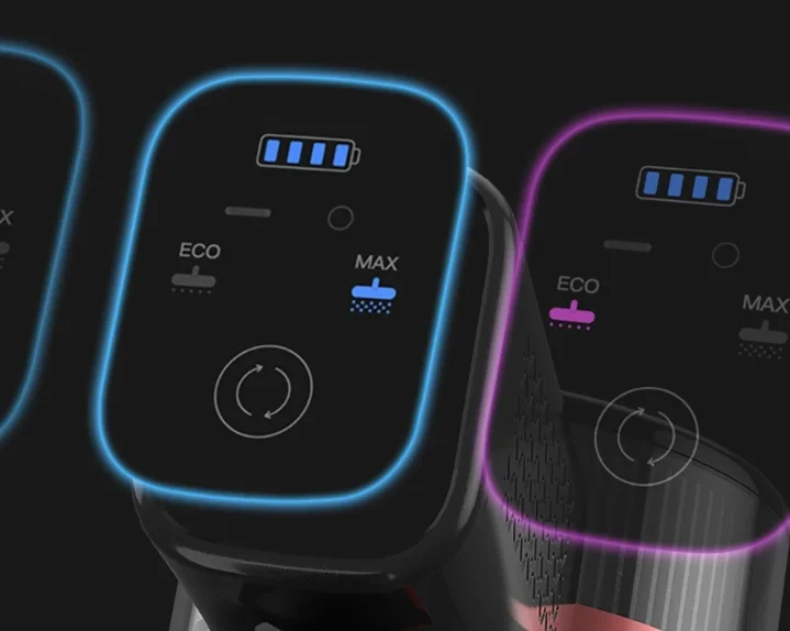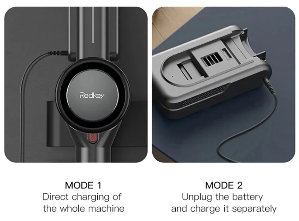 Az akkumulátora egy mozdulattal cserélhető, de egy töltéssel beállított módtól függően 60, 25 és 15 percig bírja, amik teljesen átlagos értékek. Kétféle módon tölthető, vagy magát a porszívót teszitek rá a töltőre, vagy csak az aksit.
