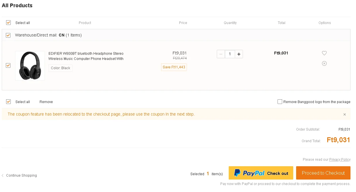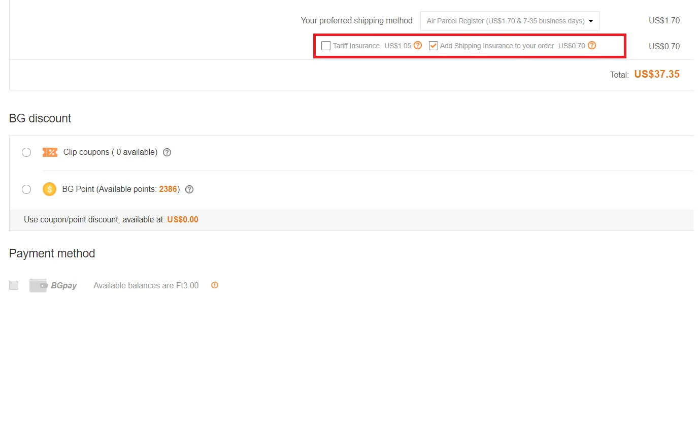 Szemfülesek észrevehették már, hogy a Banggood frissítette a fizetési felületét. Eddig két lehetőségetek volt a termék kiválasztásakor: vagy a kosárba tettétek vagy azonnal megvettétek. Ez a két opció maradt, ami viszont változott, az az, hogy a kuponkódot most már nem a kosárnál, hanem az összesítésnél adhatjátok hozzá. Kedves a Banggoodtól, hogy erre fel is hívja azok figyelmét, akik a régi helyen keresik ezt az opciót. De a variáláson kívül még fontosabb az, hogy átismételjük azt az évek óta jelenlévő lehetőséget, hogy hogyan tudjátok biztosítani a csomagotokat.